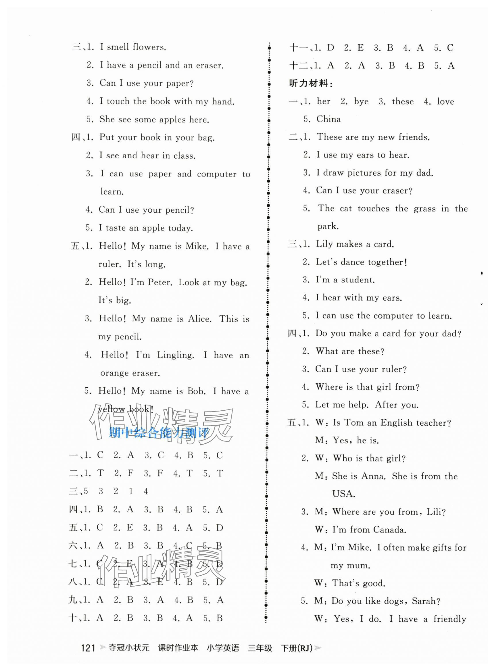 注:目前有些书本章节名称可能整理的还不是很完善,但都是按照顺序排列的,请同学们按照顺序仔细查找。练习册 2025年夺冠小状元课时作业本三年级英语下册人教版 答案主要是用来给同学们做完题方便对答案用的,请勿直接抄袭。