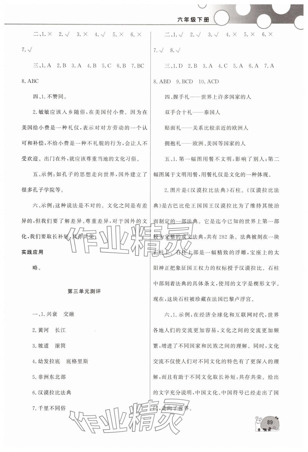 注:目前有些书本章节名称可能整理的还不是很完善,但都是按照顺序排列的,请同学们按照顺序仔细查找。练习册 2025年同步练习山东文艺出版社六年级道德与法治下册人教版 答案主要是用来给同学们做完题方便对答案用的,请勿直接抄袭。