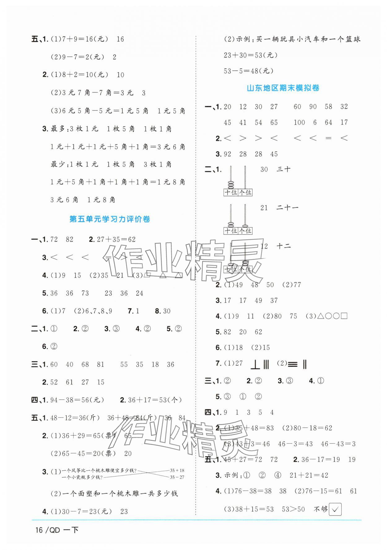 注:目前有些书本章节名称可能整理的还不是很完善,但都是按照顺序排列的,请同学们按照顺序仔细查找。练习册 2025年阳光同学课时优化作业一年级数学下册青岛版 答案主要是用来给同学们做完题方便对答案用的,请勿直接抄袭。