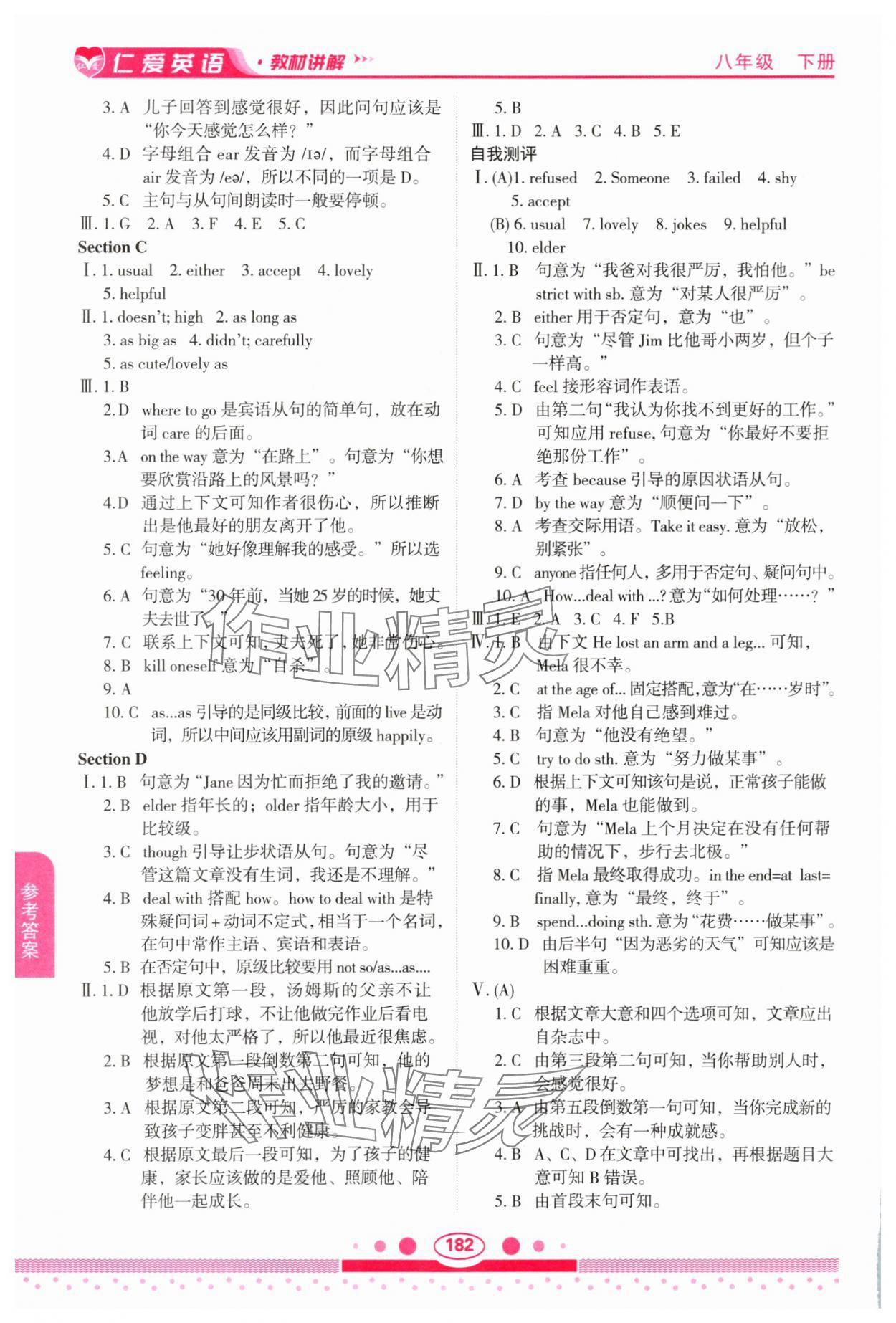 注:目前有些书本章节名称可能整理的还不是很完善,但都是按照顺序排列的,请同学们按照顺序仔细查找。练习册 2025年仁爱英语教材讲解八年级下册仁爱版 答案主要是用来给同学们做完题方便对答案用的,请勿直接抄袭。