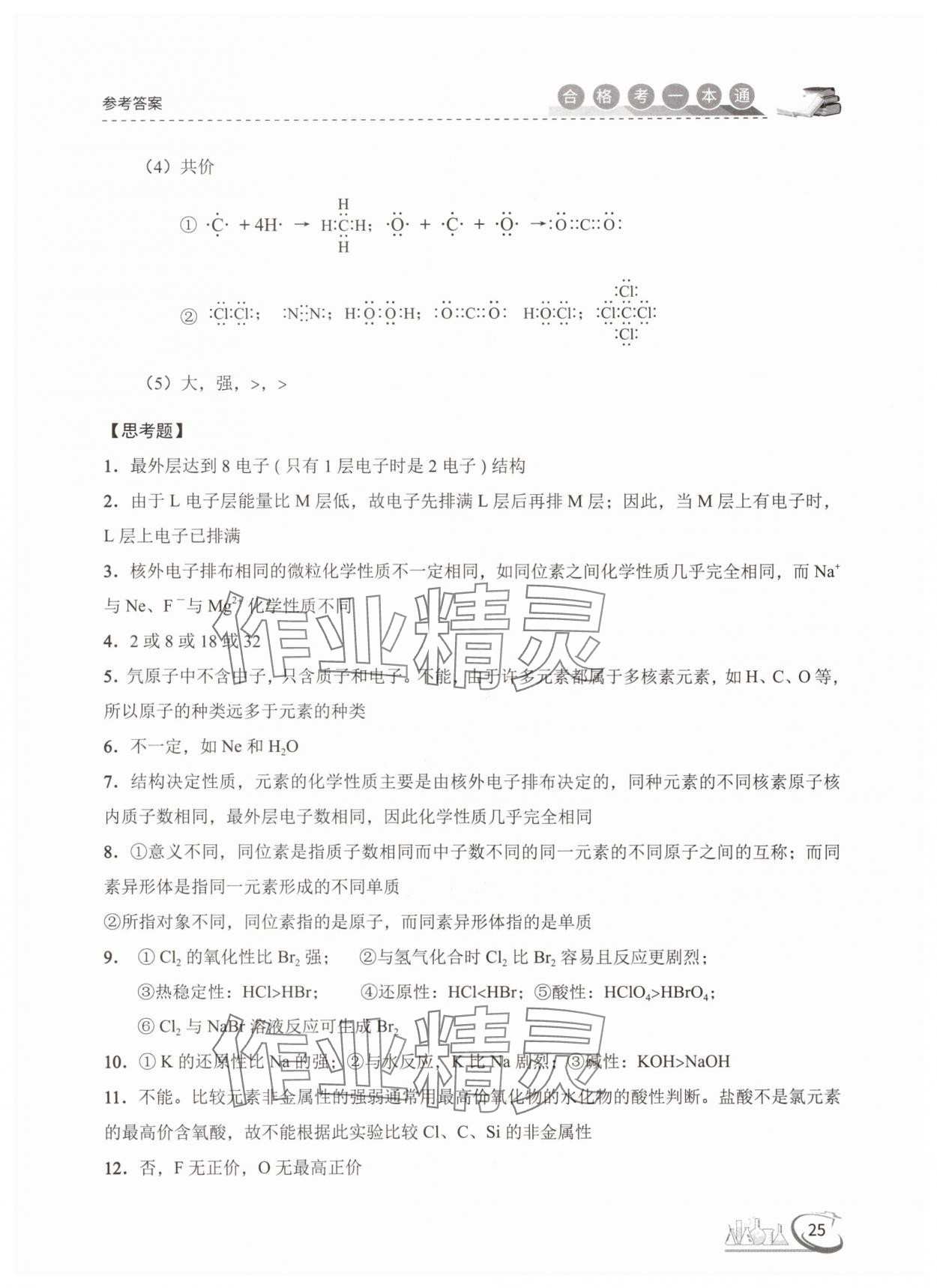 注:目前有些书本章节名称可能整理的还不是很完善,但都是按照顺序排列的,请同学们按照顺序仔细查找。练习册 2025年高中化学合格考一本通 答案主要是用来给同学们做完题方便对答案用的,请勿直接抄袭。