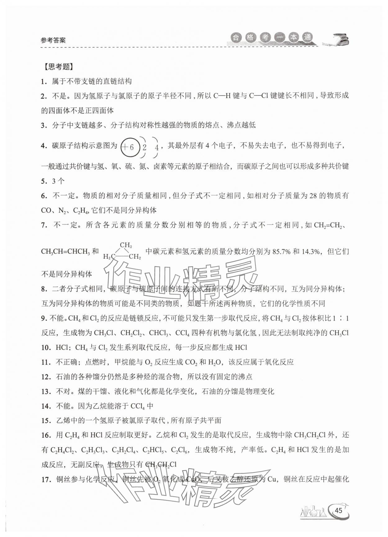注:目前有些书本章节名称可能整理的还不是很完善,但都是按照顺序排列的,请同学们按照顺序仔细查找。练习册 2025年高中化学合格考一本通 答案主要是用来给同学们做完题方便对答案用的,请勿直接抄袭。