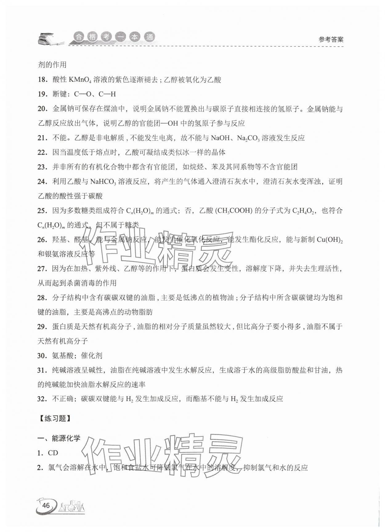 注:目前有些书本章节名称可能整理的还不是很完善,但都是按照顺序排列的,请同学们按照顺序仔细查找。练习册 2025年高中化学合格考一本通 答案主要是用来给同学们做完题方便对答案用的,请勿直接抄袭。