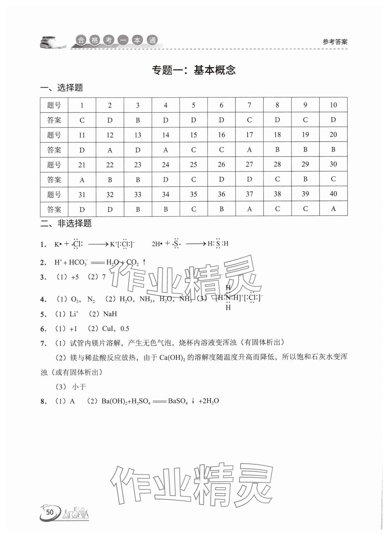 注:目前有些书本章节名称可能整理的还不是很完善,但都是按照顺序排列的,请同学们按照顺序仔细查找。练习册 2025年高中化学合格考一本通 答案主要是用来给同学们做完题方便对答案用的,请勿直接抄袭。