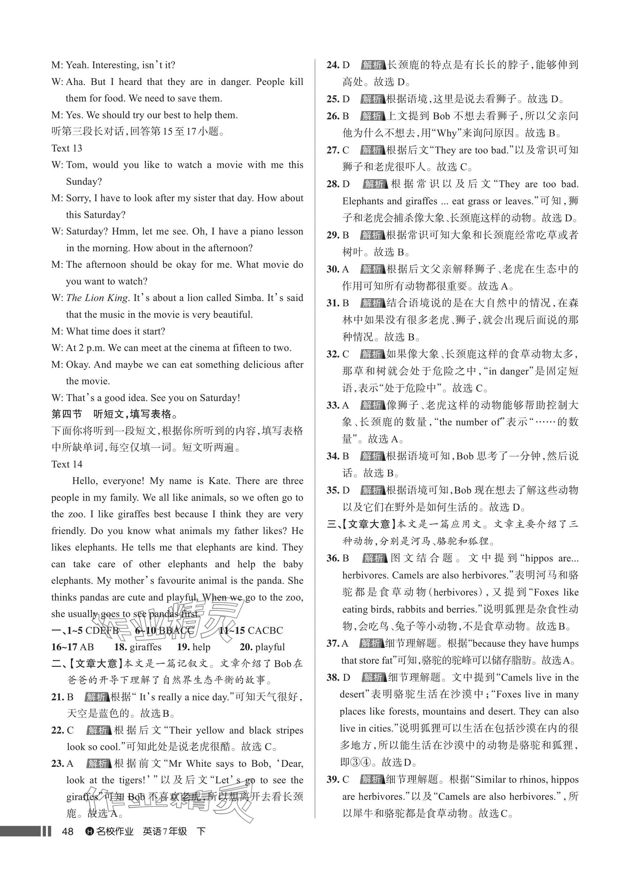 注:目前有些书本章节名称可能整理的还不是很完善,但都是按照顺序排列的,请同学们按照顺序仔细查找。练习册 2025年名校作业七年级英语下册人教版湖北专版 答案主要是用来给同学们做完题方便对答案用的,请勿直接抄袭。