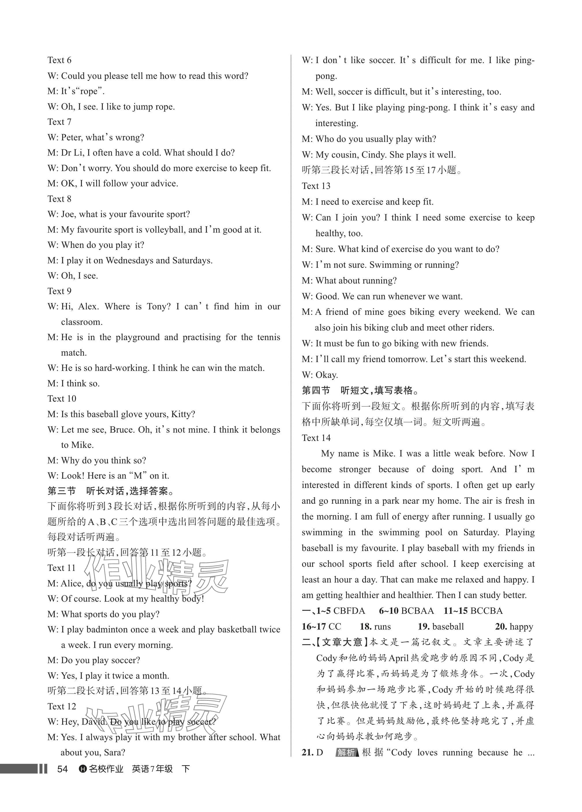注:目前有些书本章节名称可能整理的还不是很完善,但都是按照顺序排列的,请同学们按照顺序仔细查找。练习册 2025年名校作业七年级英语下册人教版湖北专版 答案主要是用来给同学们做完题方便对答案用的,请勿直接抄袭。
