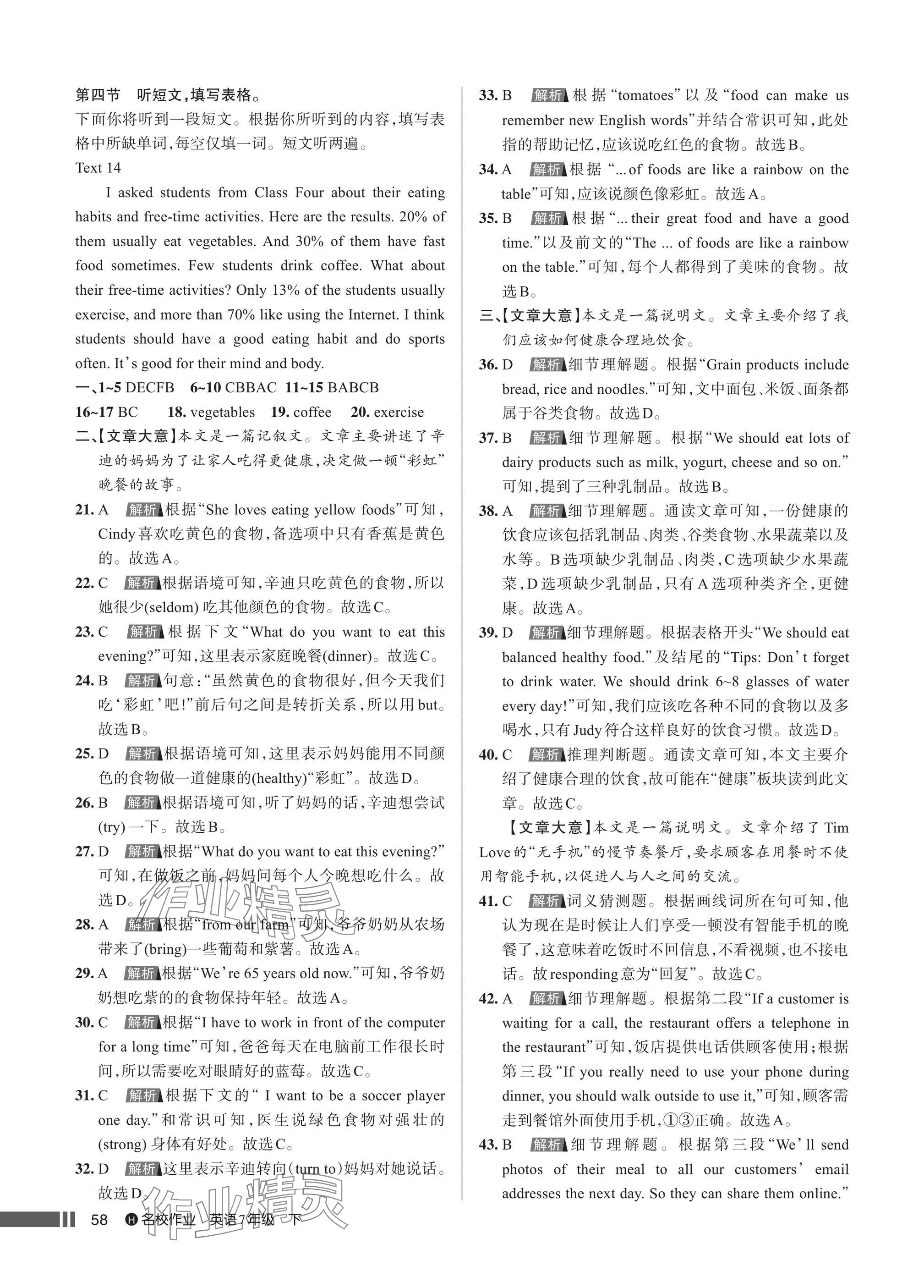 注:目前有些书本章节名称可能整理的还不是很完善,但都是按照顺序排列的,请同学们按照顺序仔细查找。练习册 2025年名校作业七年级英语下册人教版湖北专版 答案主要是用来给同学们做完题方便对答案用的,请勿直接抄袭。