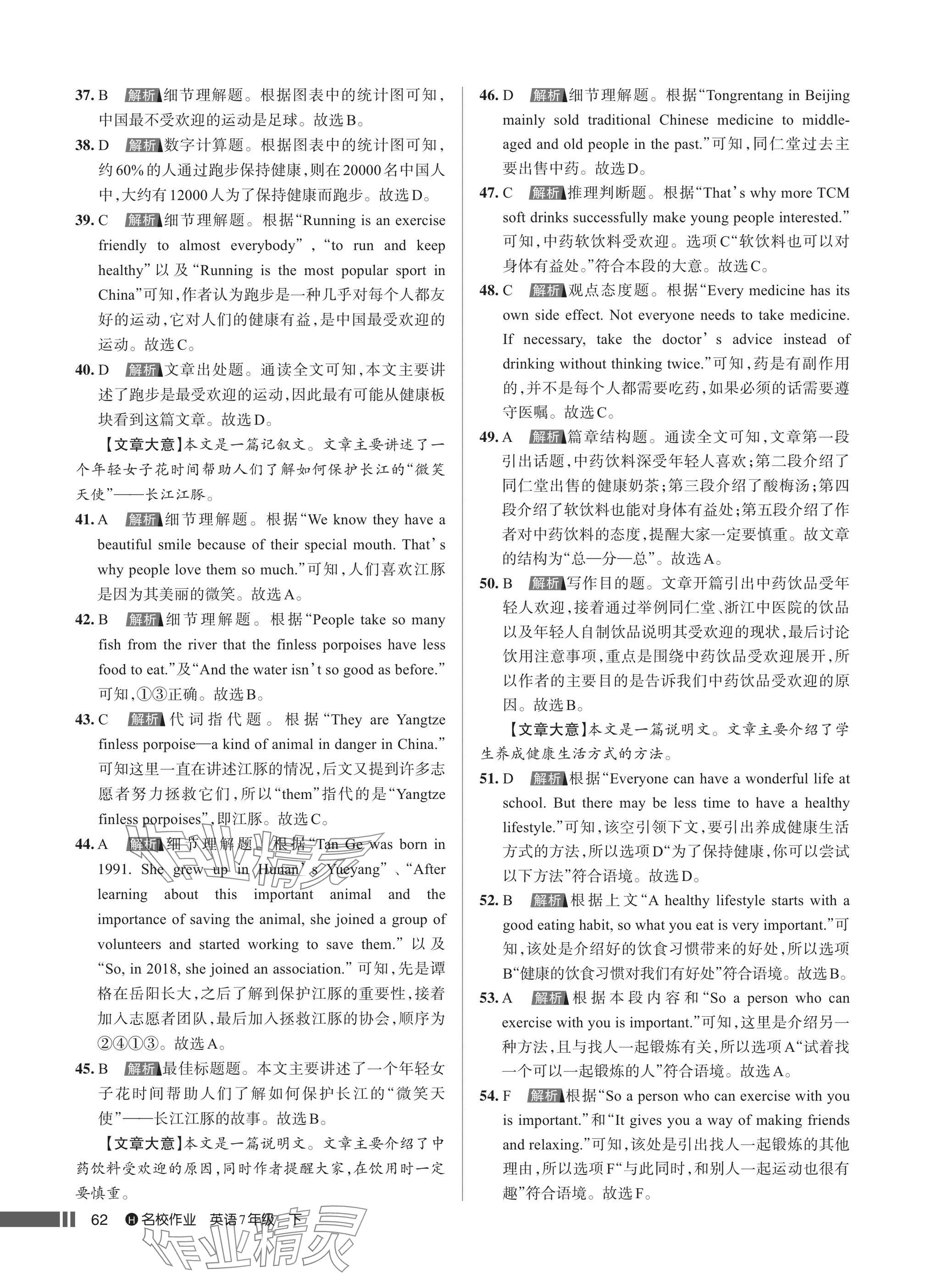 注:目前有些书本章节名称可能整理的还不是很完善,但都是按照顺序排列的,请同学们按照顺序仔细查找。练习册 2025年名校作业七年级英语下册人教版湖北专版 答案主要是用来给同学们做完题方便对答案用的,请勿直接抄袭。