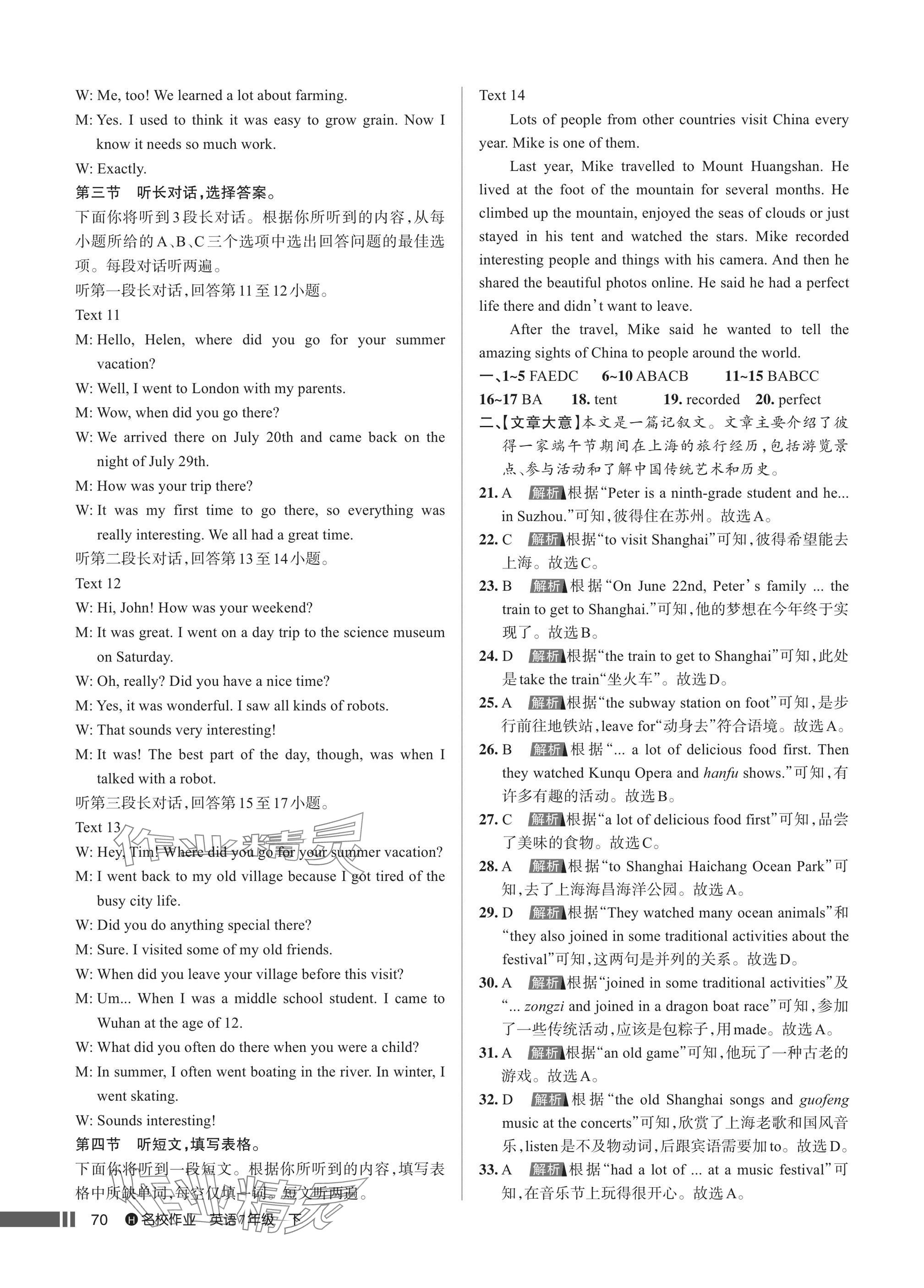 注:目前有些书本章节名称可能整理的还不是很完善,但都是按照顺序排列的,请同学们按照顺序仔细查找。练习册 2025年名校作业七年级英语下册人教版湖北专版 答案主要是用来给同学们做完题方便对答案用的,请勿直接抄袭。