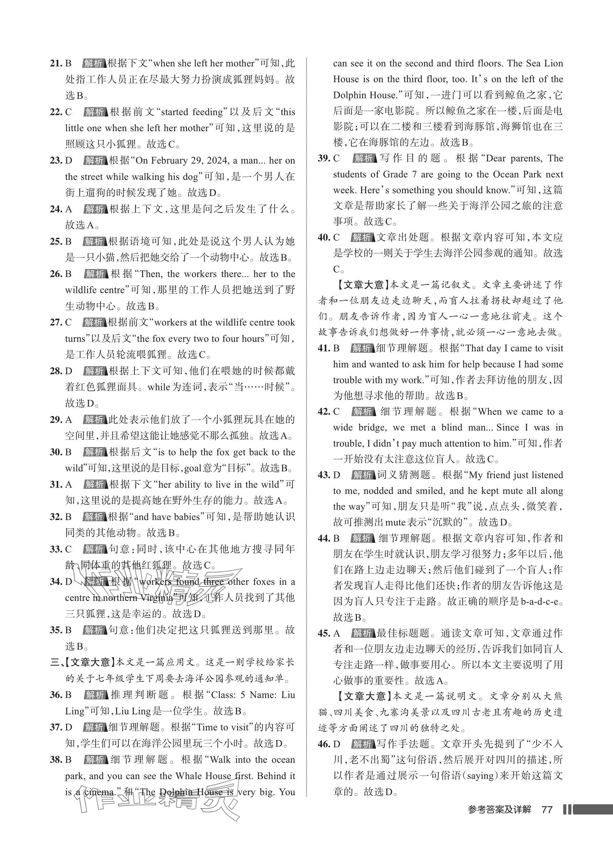 注:目前有些书本章节名称可能整理的还不是很完善,但都是按照顺序排列的,请同学们按照顺序仔细查找。练习册 2025年名校作业七年级英语下册人教版湖北专版 答案主要是用来给同学们做完题方便对答案用的,请勿直接抄袭。