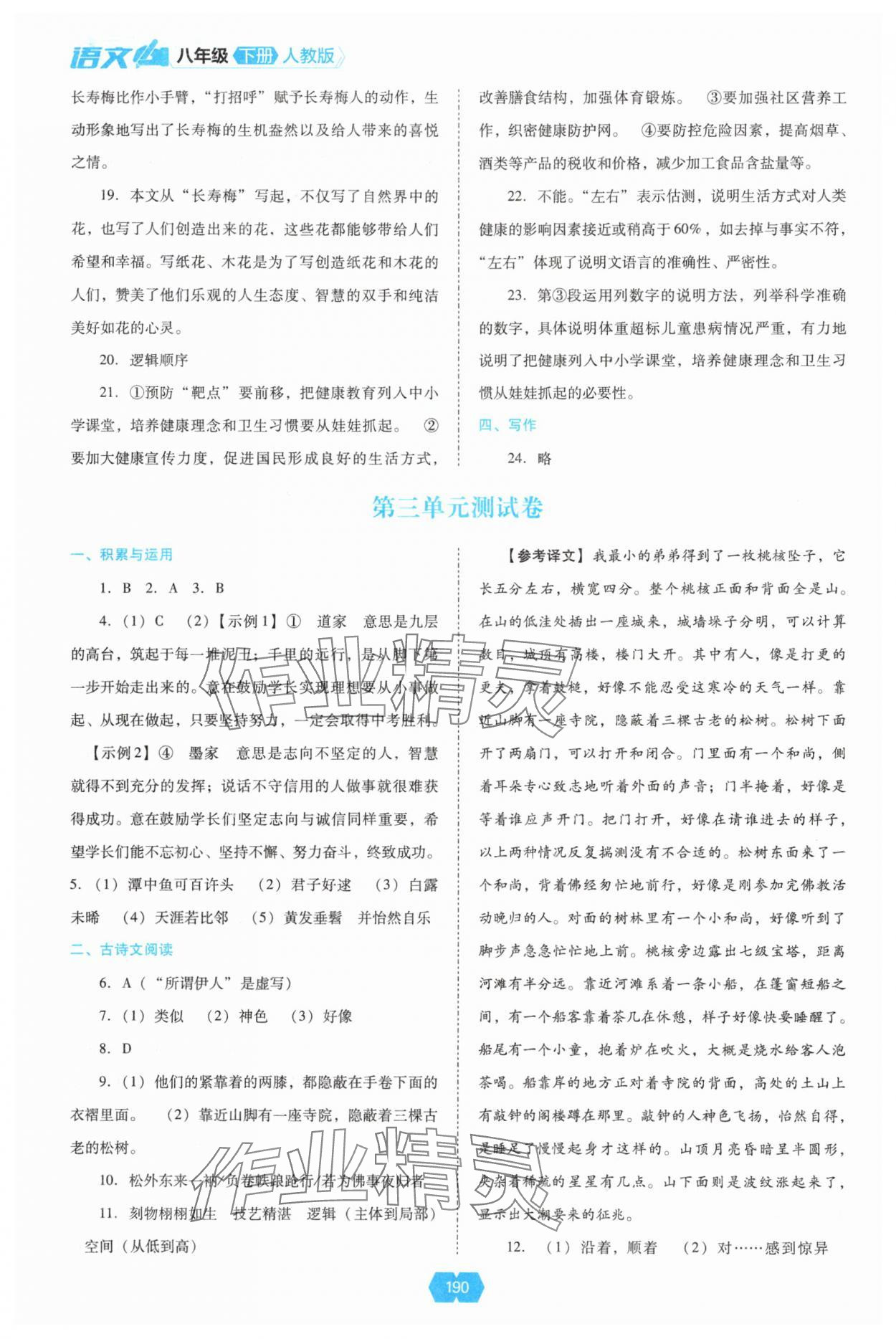 注:目前有些书本章节名称可能整理的还不是很完善,但都是按照顺序排列的,请同学们按照顺序仔细查找。练习册 2025年新课程能力培养八年级语文下册人教版 答案主要是用来给同学们做完题方便对答案用的,请勿直接抄袭。
