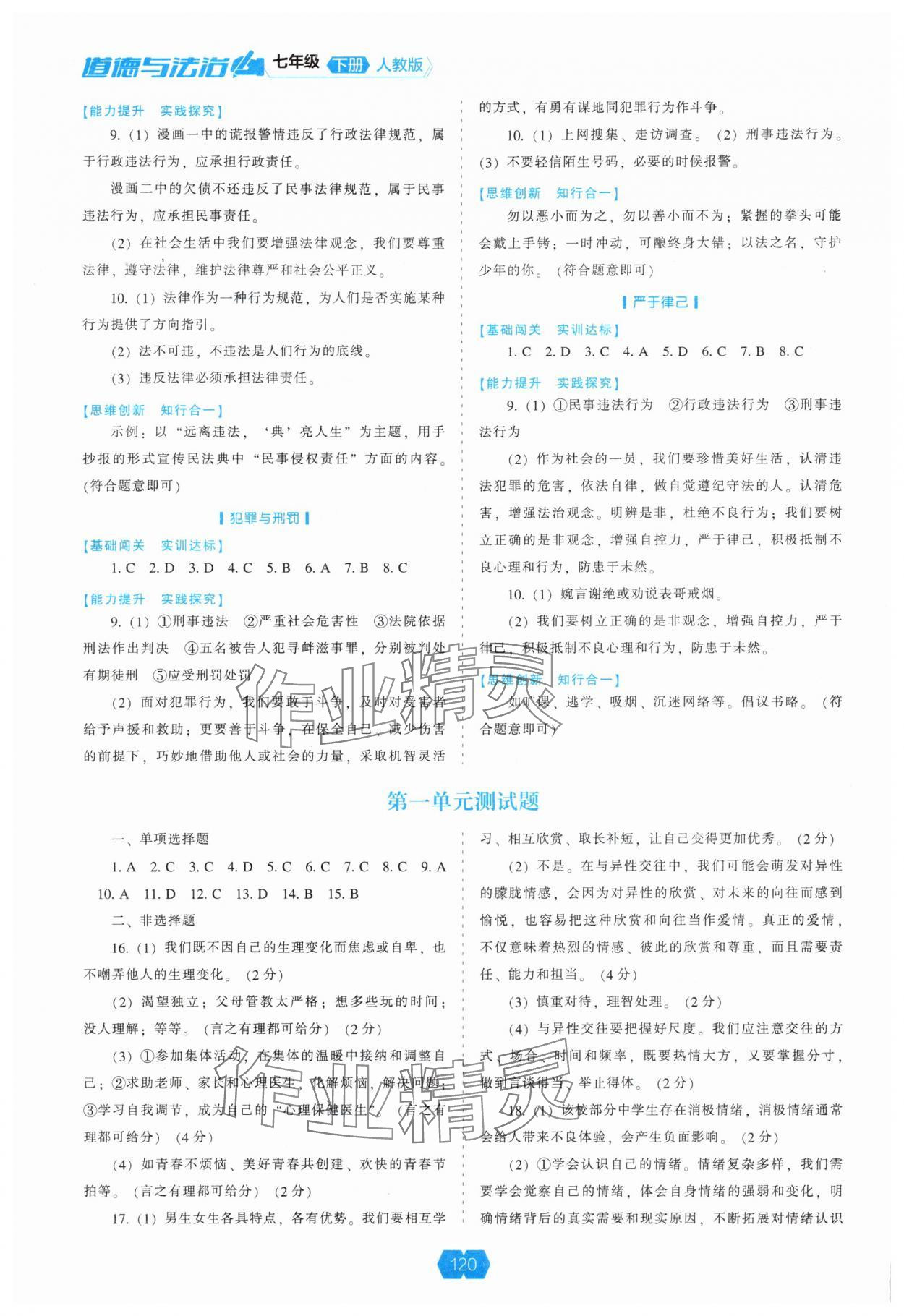 注:目前有些书本章节名称可能整理的还不是很完善,但都是按照顺序排列的,请同学们按照顺序仔细查找。练习册 2025年新课程能力培养七年级道德与法治下册人教版 答案主要是用来给同学们做完题方便对答案用的,请勿直接抄袭。