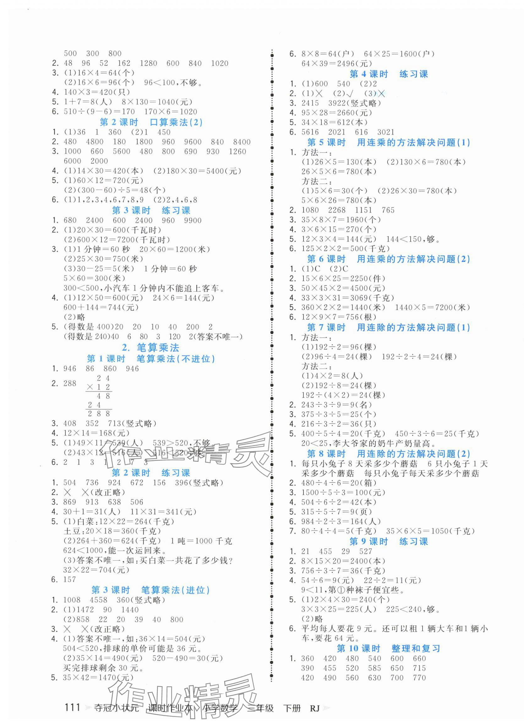 注:目前有些书本章节名称可能整理的还不是很完善,但都是按照顺序排列的,请同学们按照顺序仔细查找。练习册 2025年夺冠小状元课时作业本三年级数学下册人教版 答案主要是用来给同学们做完题方便对答案用的,请勿直接抄袭。
