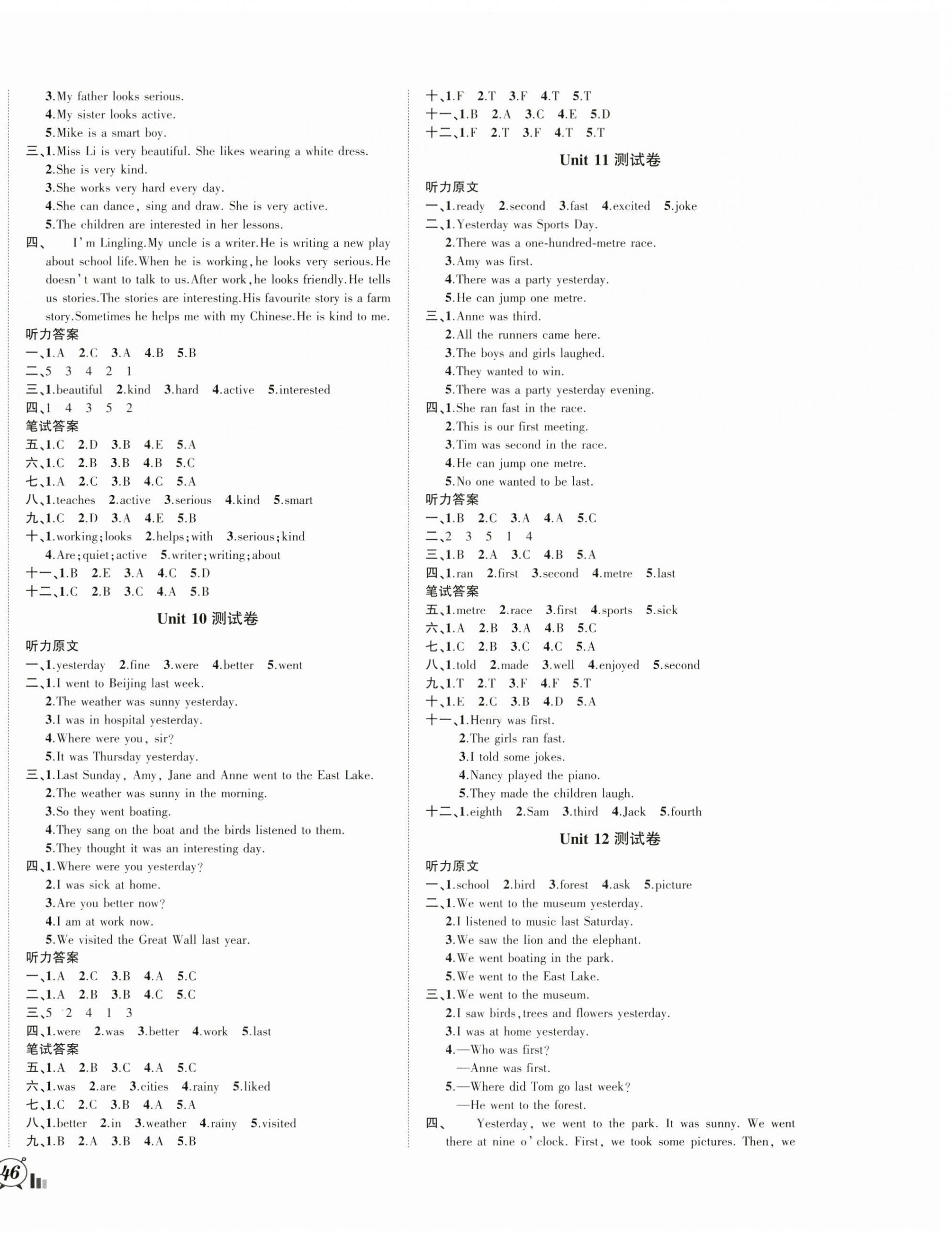 注:目前有些书本章节名称可能整理的还不是很完善,但都是按照顺序排列的,请同学们按照顺序仔细查找。练习册 2025年状元成才路创新名卷五年级英语下册湘少版 答案主要是用来给同学们做完题方便对答案用的,请勿直接抄袭。