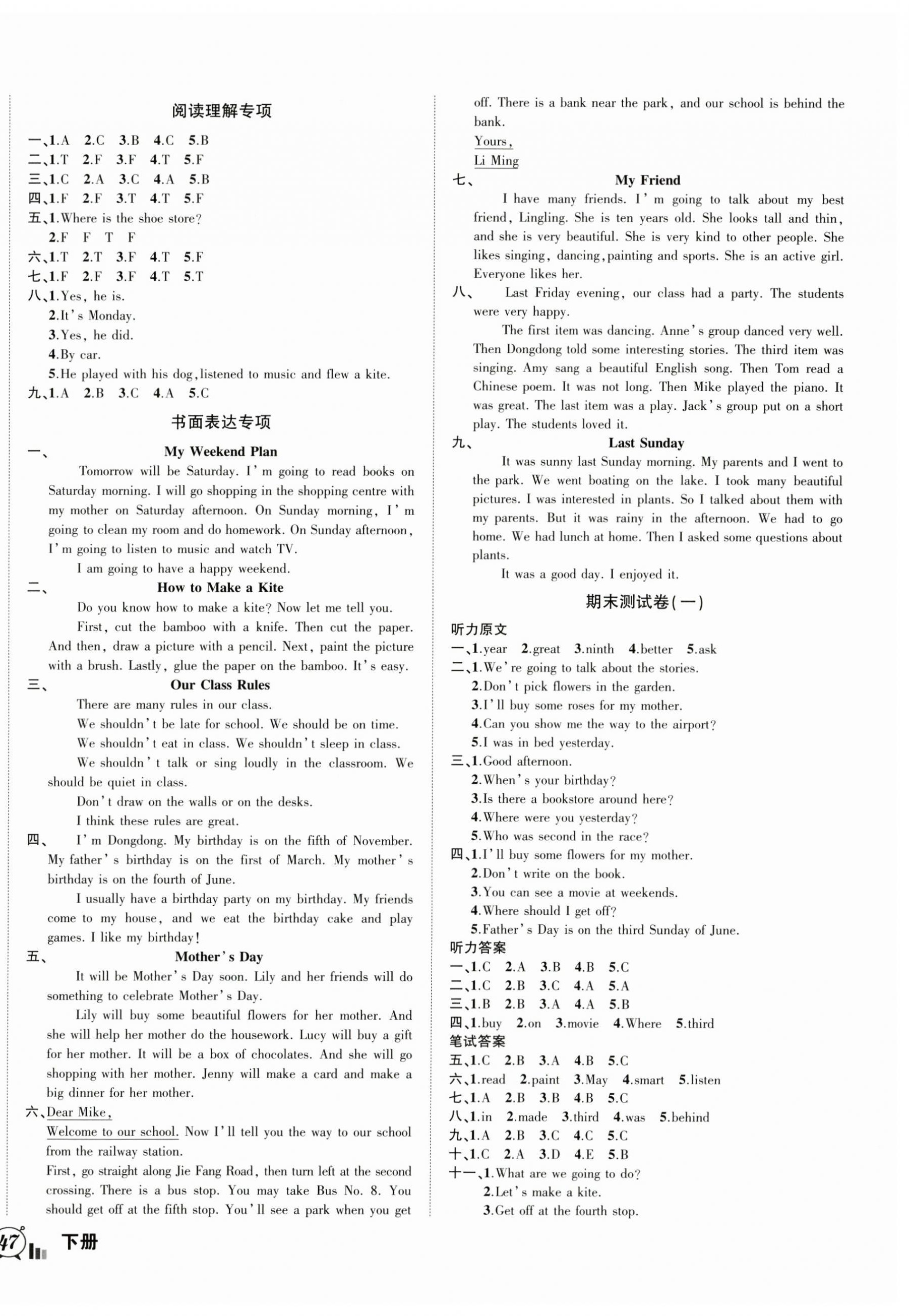 注:目前有些书本章节名称可能整理的还不是很完善,但都是按照顺序排列的,请同学们按照顺序仔细查找。练习册 2025年状元成才路创新名卷五年级英语下册湘少版 答案主要是用来给同学们做完题方便对答案用的,请勿直接抄袭。