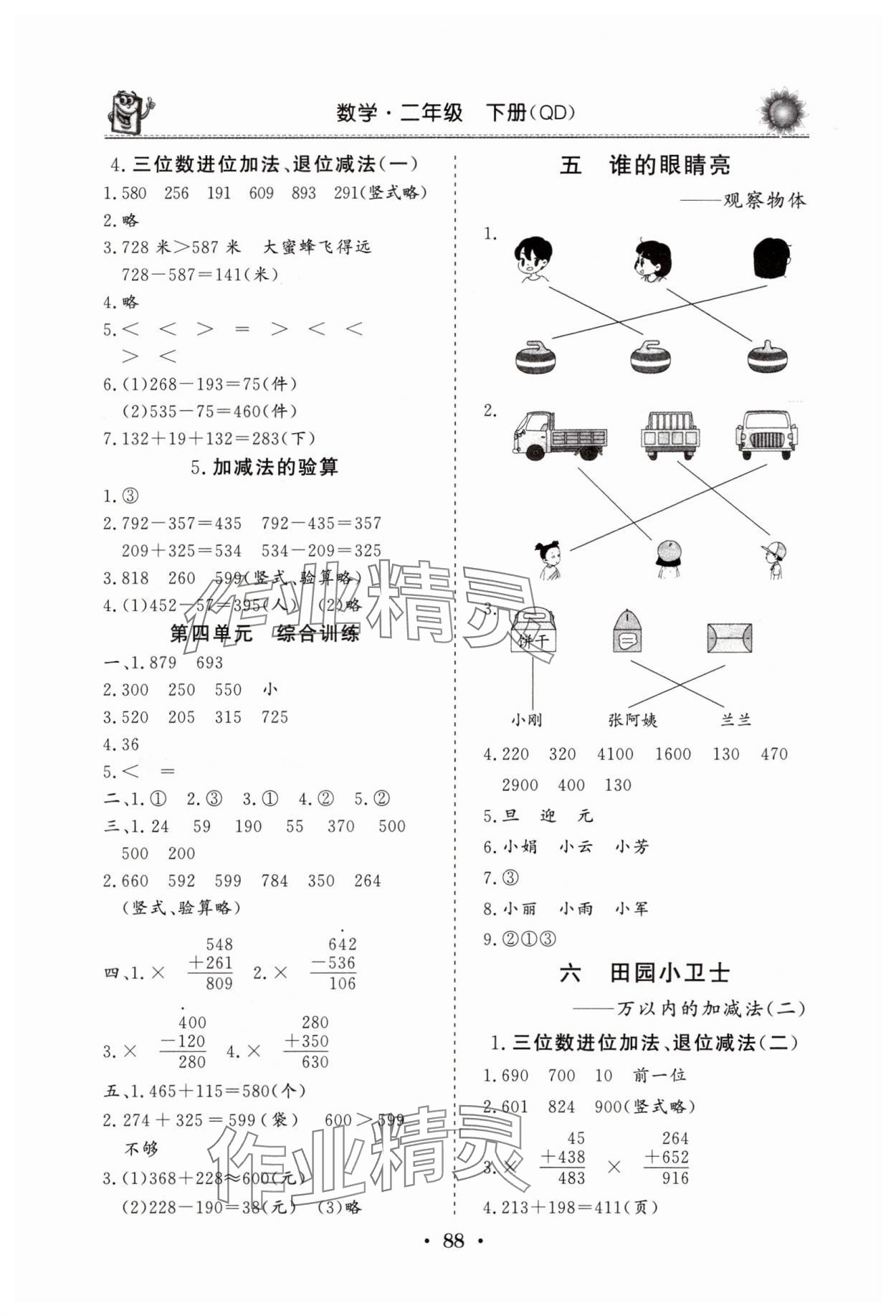 注:目前有些书本章节名称可能整理的还不是很完善,但都是按照顺序排列的,请同学们按照顺序仔细查找。练习册 2025年名师导学伴你行同步练习二年级数学下册青岛版 答案主要是用来给同学们做完题方便对答案用的,请勿直接抄袭。