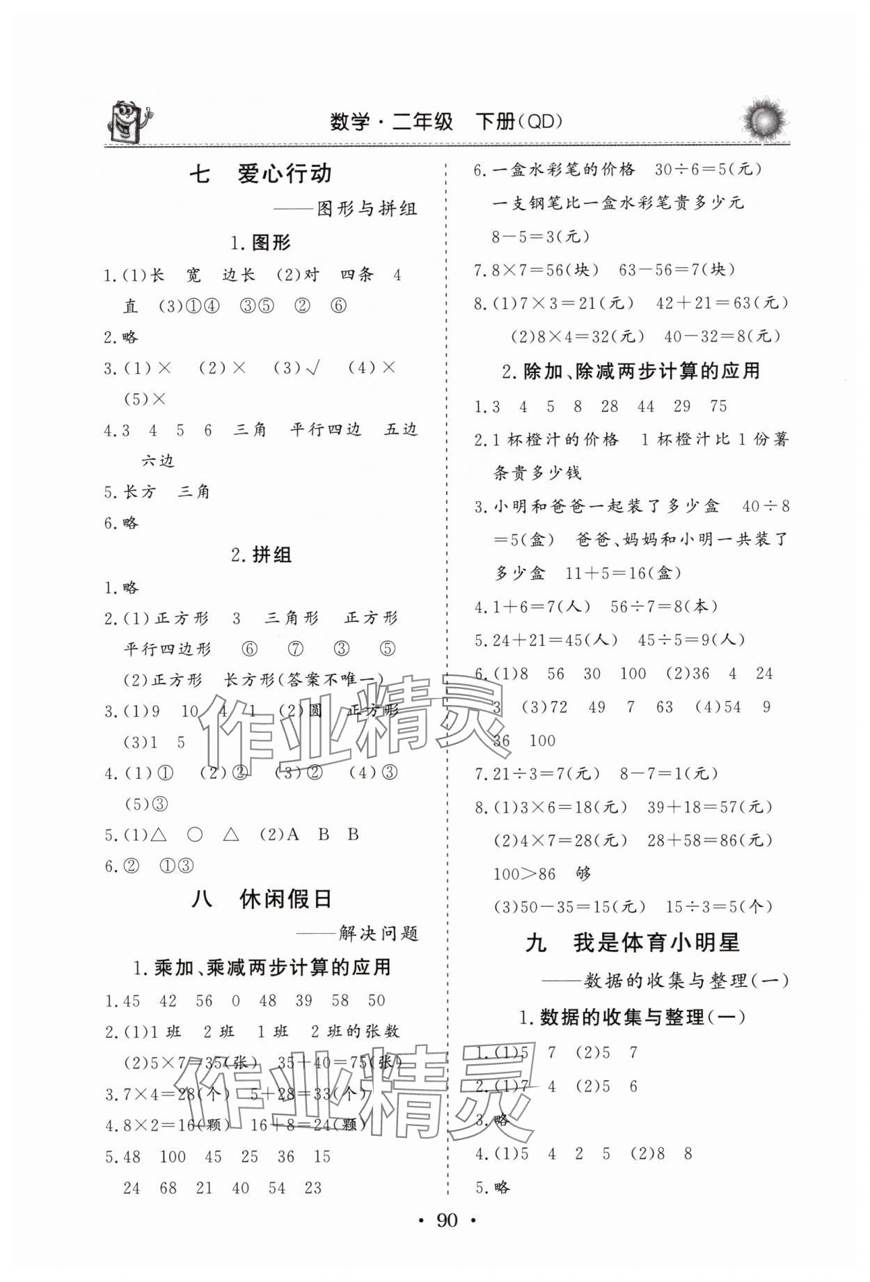 注:目前有些书本章节名称可能整理的还不是很完善,但都是按照顺序排列的,请同学们按照顺序仔细查找。练习册 2025年名师导学伴你行同步练习二年级数学下册青岛版 答案主要是用来给同学们做完题方便对答案用的,请勿直接抄袭。