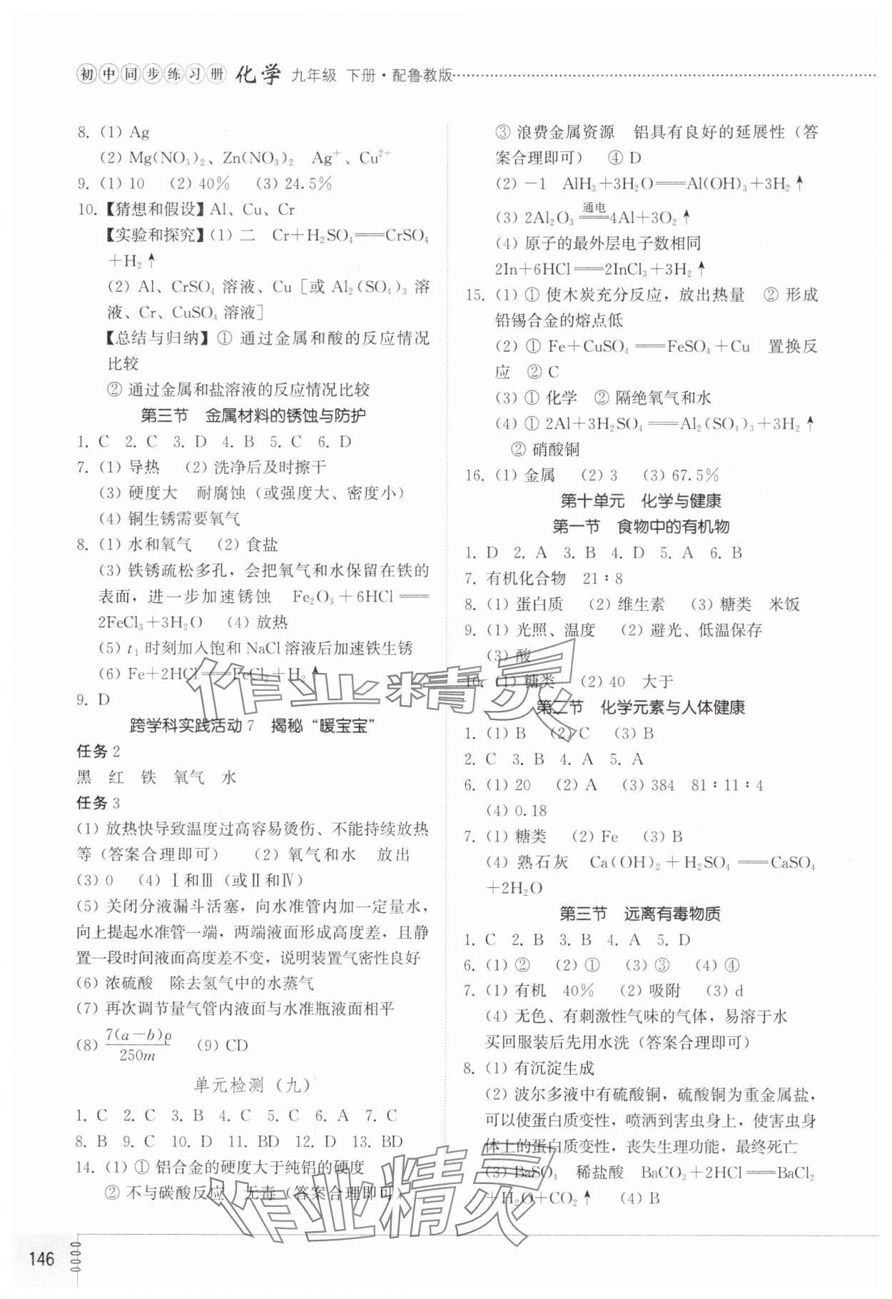 注:目前有些书本章节名称可能整理的还不是很完善,但都是按照顺序排列的,请同学们按照顺序仔细查找。练习册 2025年同步练习册山东教育出版社九年级化学下册鲁教版 答案主要是用来给同学们做完题方便对答案用的,请勿直接抄袭。