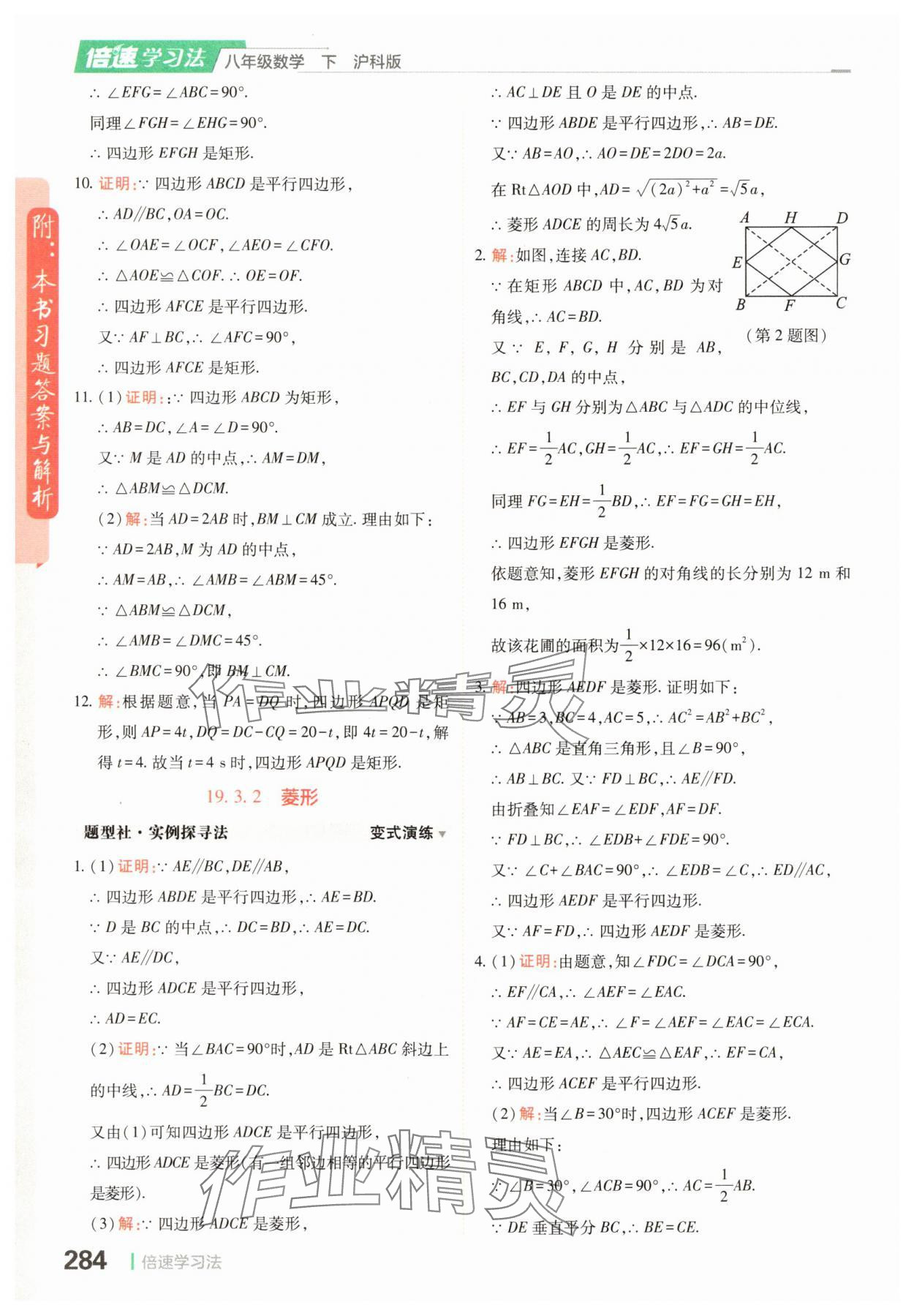 注:目前有些书本章节名称可能整理的还不是很完善,但都是按照顺序排列的,请同学们按照顺序仔细查找。练习册 2025年倍速学习法八年级数学沪科版下册 答案主要是用来给同学们做完题方便对答案用的,请勿直接抄袭。
