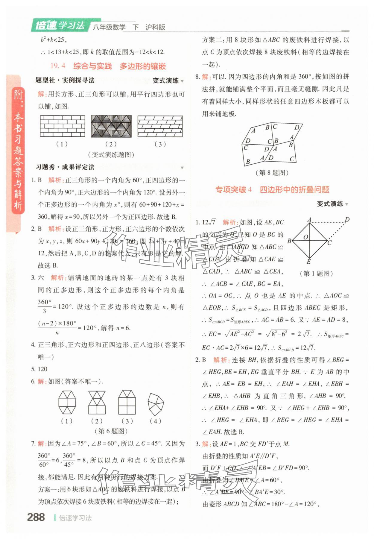 注:目前有些书本章节名称可能整理的还不是很完善,但都是按照顺序排列的,请同学们按照顺序仔细查找。练习册 2025年倍速学习法八年级数学沪科版下册 答案主要是用来给同学们做完题方便对答案用的,请勿直接抄袭。