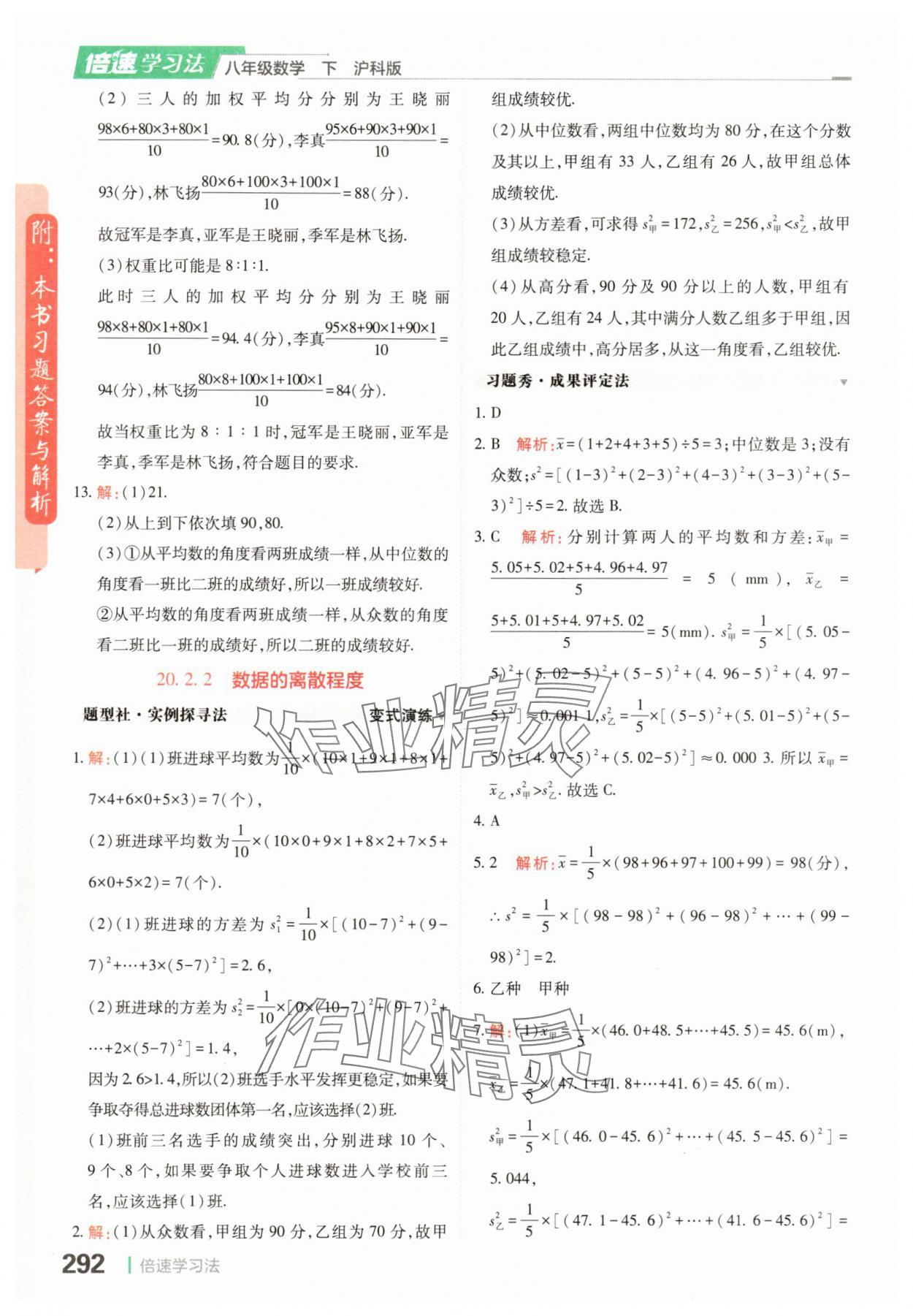 注:目前有些书本章节名称可能整理的还不是很完善,但都是按照顺序排列的,请同学们按照顺序仔细查找。练习册 2025年倍速学习法八年级数学沪科版下册 答案主要是用来给同学们做完题方便对答案用的,请勿直接抄袭。