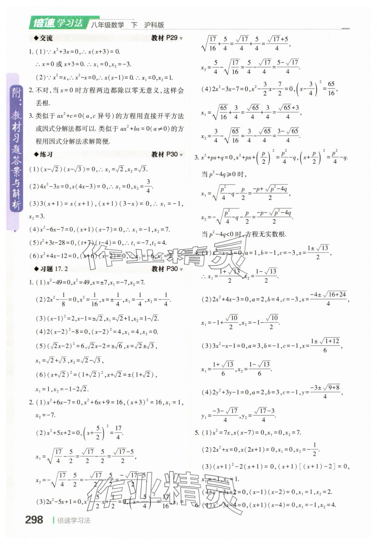 注:目前有些书本章节名称可能整理的还不是很完善,但都是按照顺序排列的,请同学们按照顺序仔细查找。练习册 2025年倍速学习法八年级数学沪科版下册 答案主要是用来给同学们做完题方便对答案用的,请勿直接抄袭。