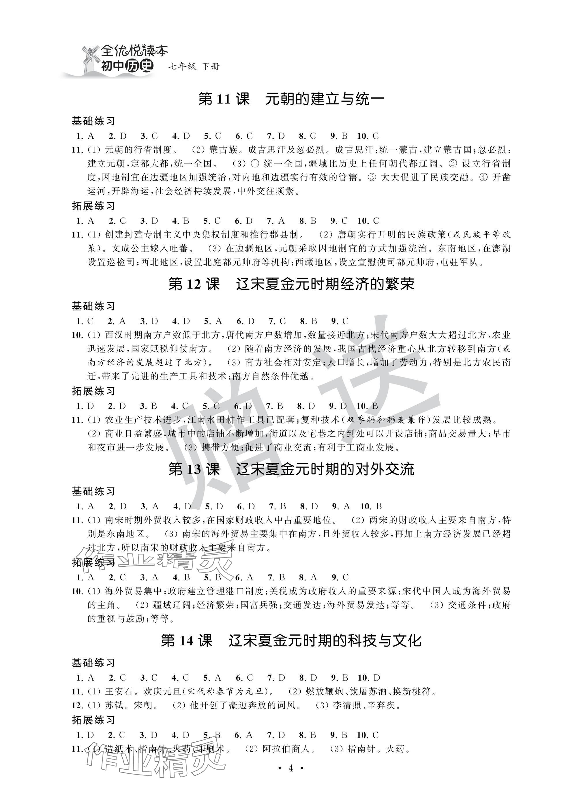 注:目前有些书本章节名称可能整理的还不是很完善,但都是按照顺序排列的,请同学们按照顺序仔细查找。练习册 2025年全优悦读本七年级历史下册人教版 答案主要是用来给同学们做完题方便对答案用的,请勿直接抄袭。