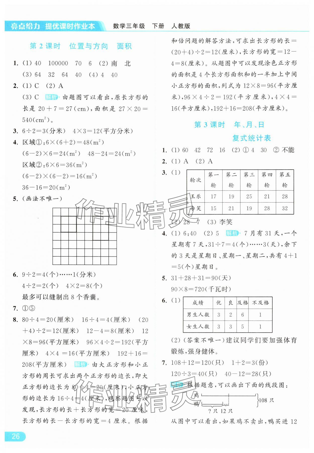 注:目前有些书本章节名称可能整理的还不是很完善,但都是按照顺序排列的,请同学们按照顺序仔细查找。练习册 2025年亮点给力提优课时作业本三年级数学下册人教版 答案主要是用来给同学们做完题方便对答案用的,请勿直接抄袭。