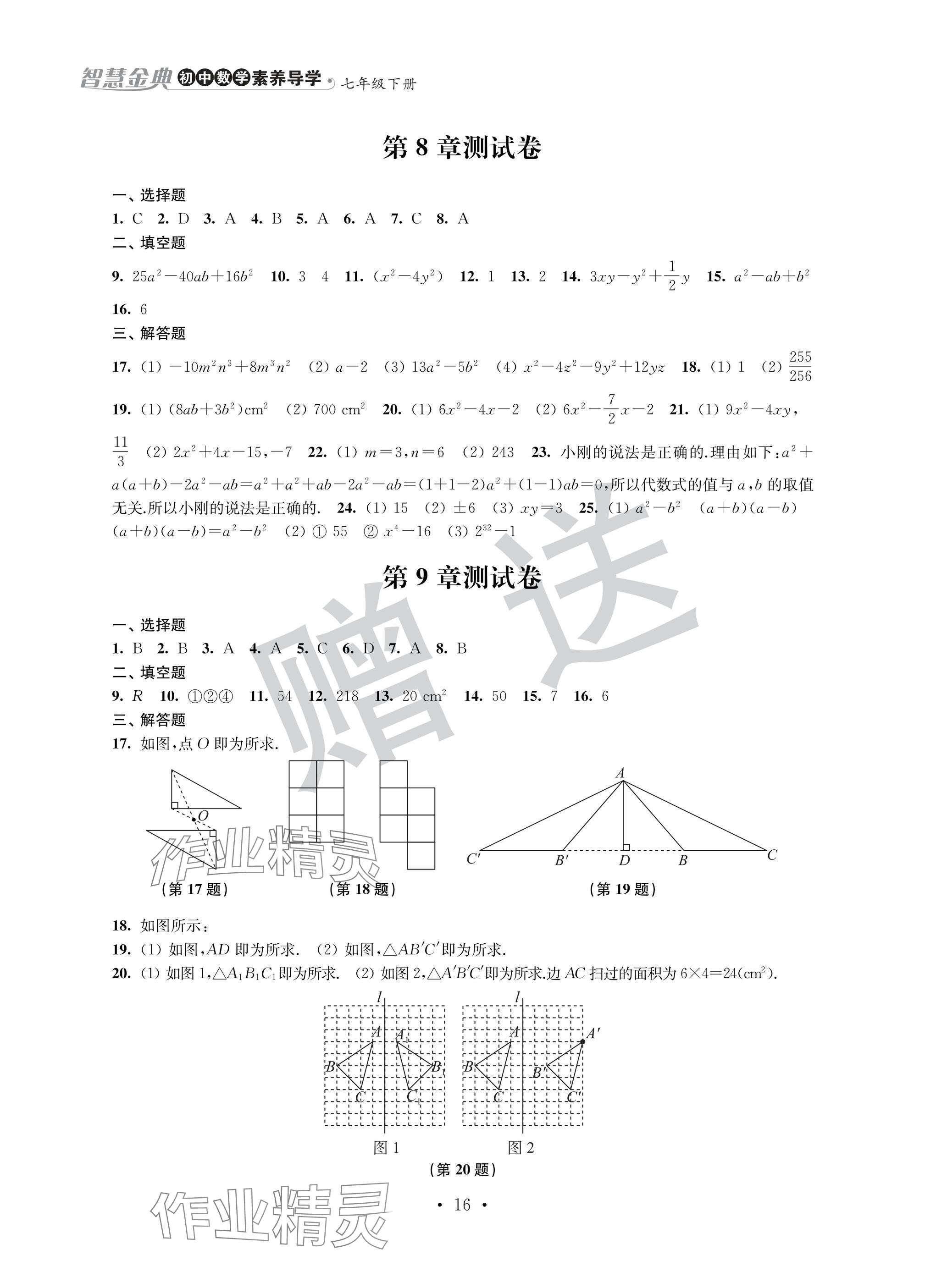 注:目前有些书本章节名称可能整理的还不是很完善,但都是按照顺序排列的,请同学们按照顺序仔细查找。练习册 2025年智慧金典素养导学七年级数学下册苏科版 答案主要是用来给同学们做完题方便对答案用的,请勿直接抄袭。