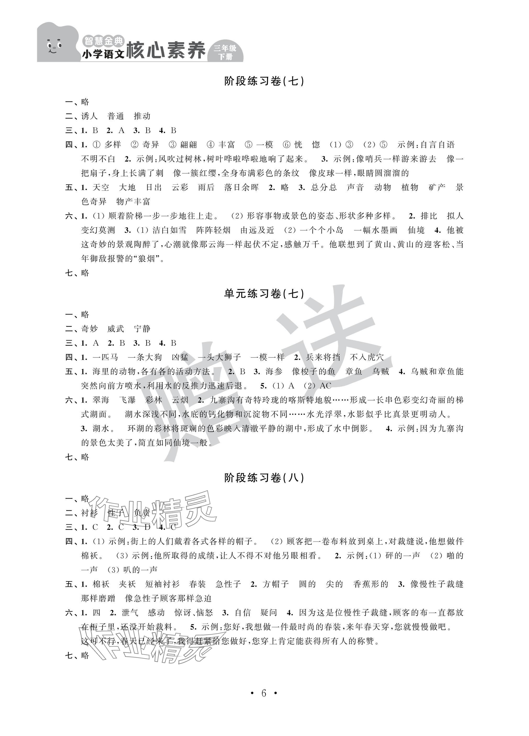 注:目前有些书本章节名称可能整理的还不是很完善,但都是按照顺序排列的,请同学们按照顺序仔细查找。练习册 2025年智慧金典核心素养三年级语文下册人教版 答案主要是用来给同学们做完题方便对答案用的,请勿直接抄袭。