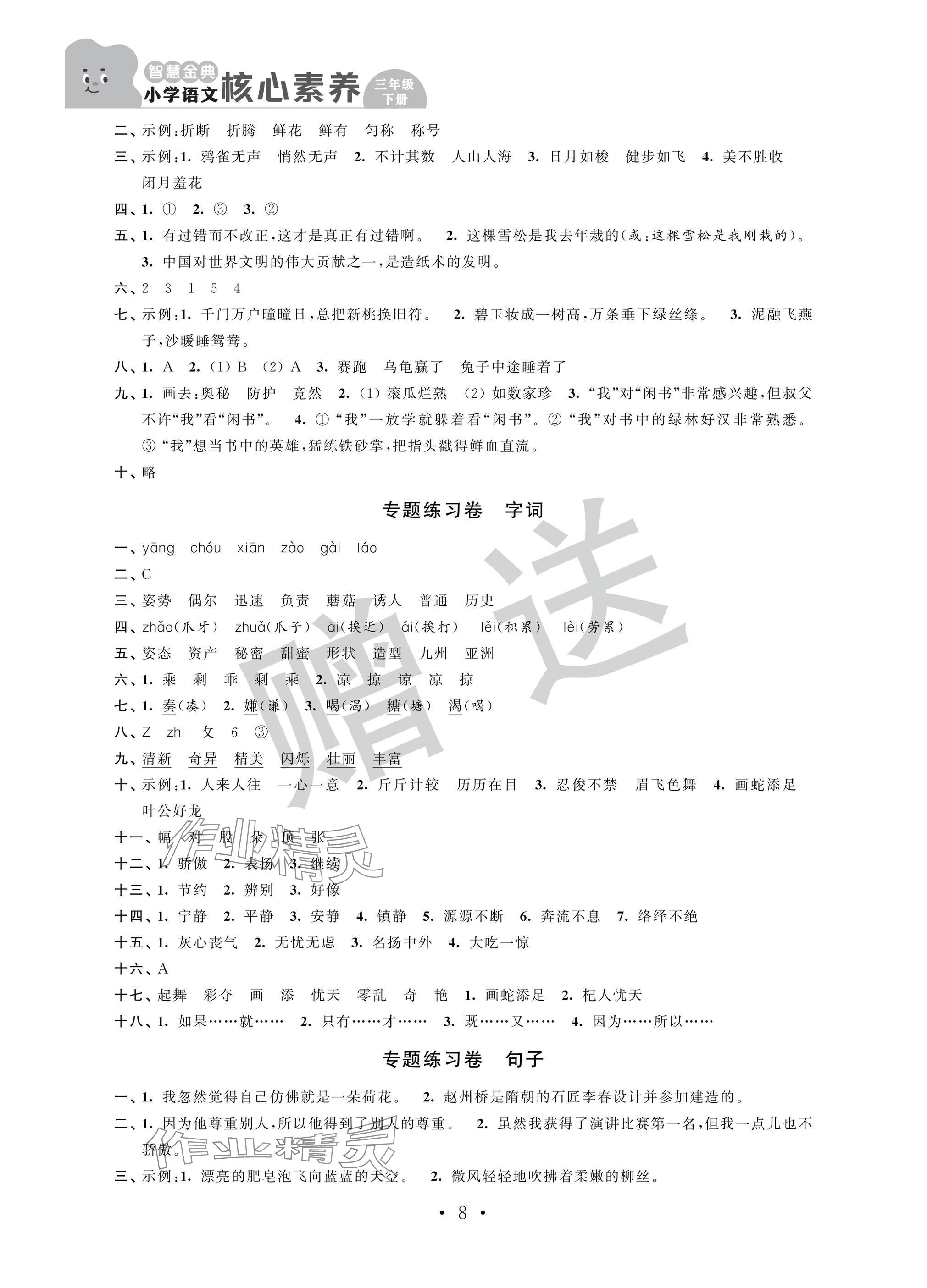 注:目前有些书本章节名称可能整理的还不是很完善,但都是按照顺序排列的,请同学们按照顺序仔细查找。练习册 2025年智慧金典核心素养三年级语文下册人教版 答案主要是用来给同学们做完题方便对答案用的,请勿直接抄袭。