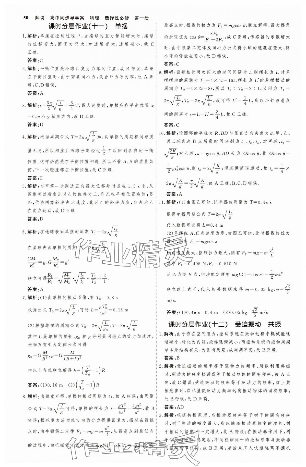 注:目前有些书本章节名称可能整理的还不是很完善,但都是按照顺序排列的,请同学们按照顺序仔细查找。练习册 2025年师说高中物理选择性必修第一册人教版 答案主要是用来给同学们做完题方便对答案用的,请勿直接抄袭。