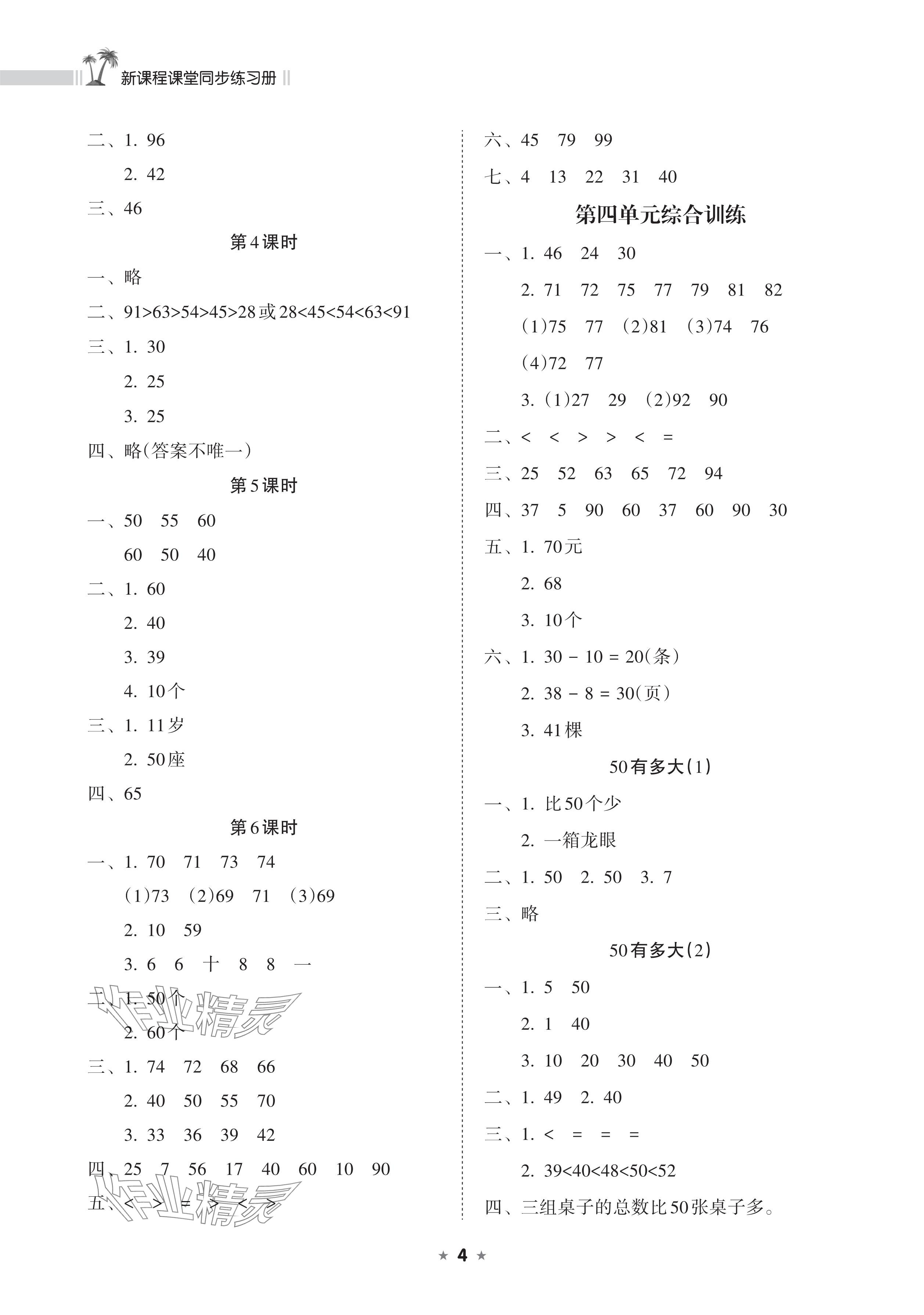 注:目前有些书本章节名称可能整理的还不是很完善,但都是按照顺序排列的,请同学们按照顺序仔细查找。练习册 2025年新课程课堂同步练习册一年级数学下册苏教版 答案主要是用来给同学们做完题方便对答案用的,请勿直接抄袭。