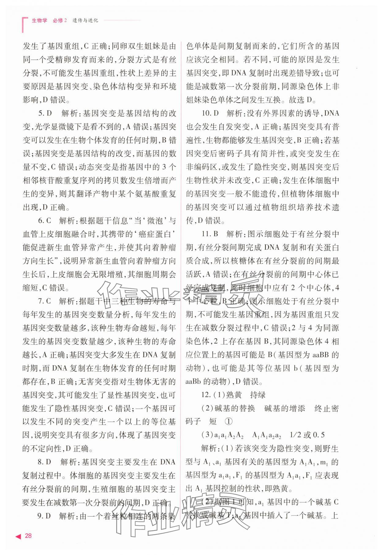 注:目前有些书本章节名称可能整理的还不是很完善,但都是按照顺序排列的,请同学们按照顺序仔细查找。练习册 2025年普通高中同步练习册高中生物必修2人教版 答案主要是用来给同学们做完题方便对答案用的,请勿直接抄袭。