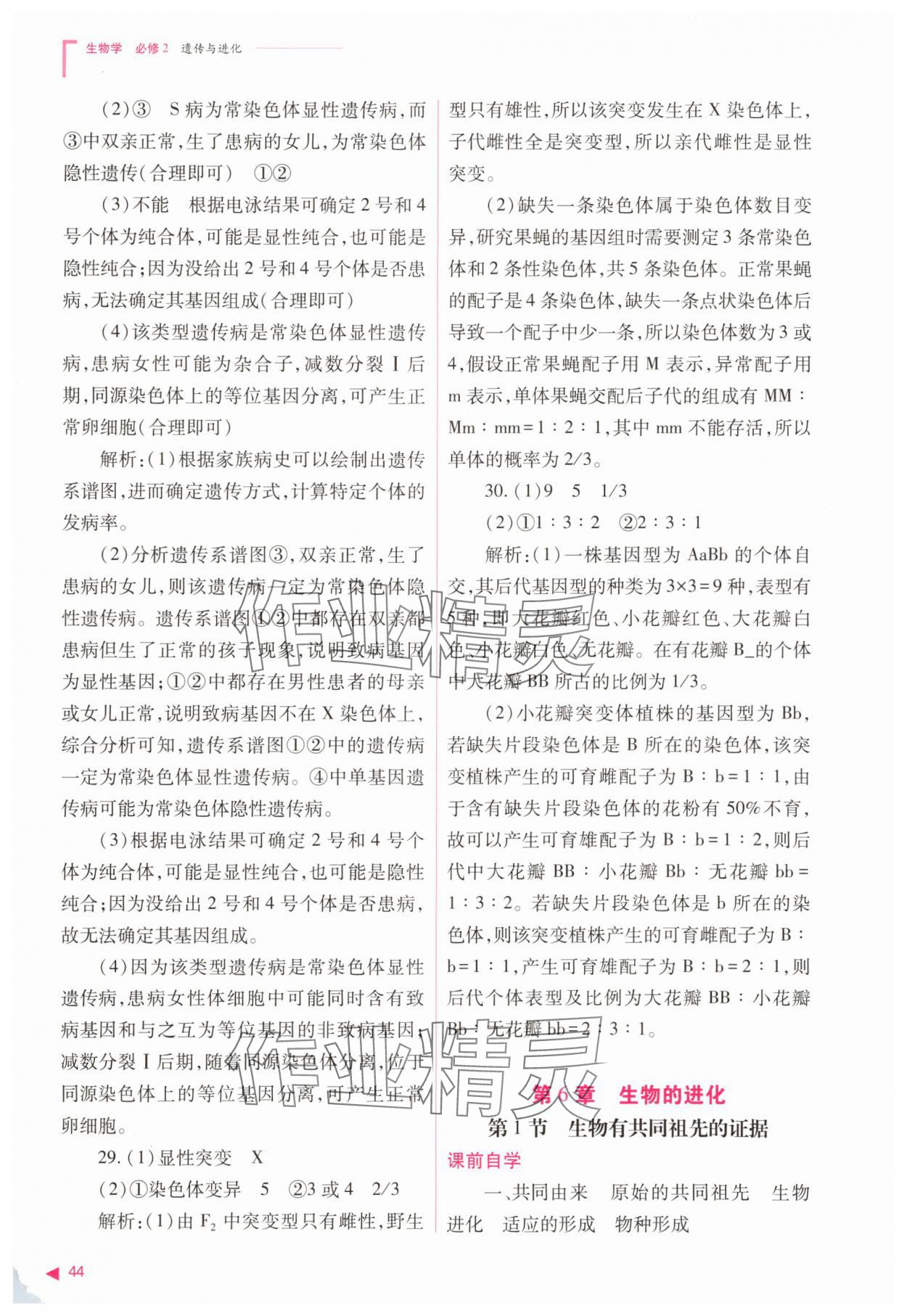 注:目前有些书本章节名称可能整理的还不是很完善,但都是按照顺序排列的,请同学们按照顺序仔细查找。练习册 2025年普通高中同步练习册高中生物必修2人教版 答案主要是用来给同学们做完题方便对答案用的,请勿直接抄袭。