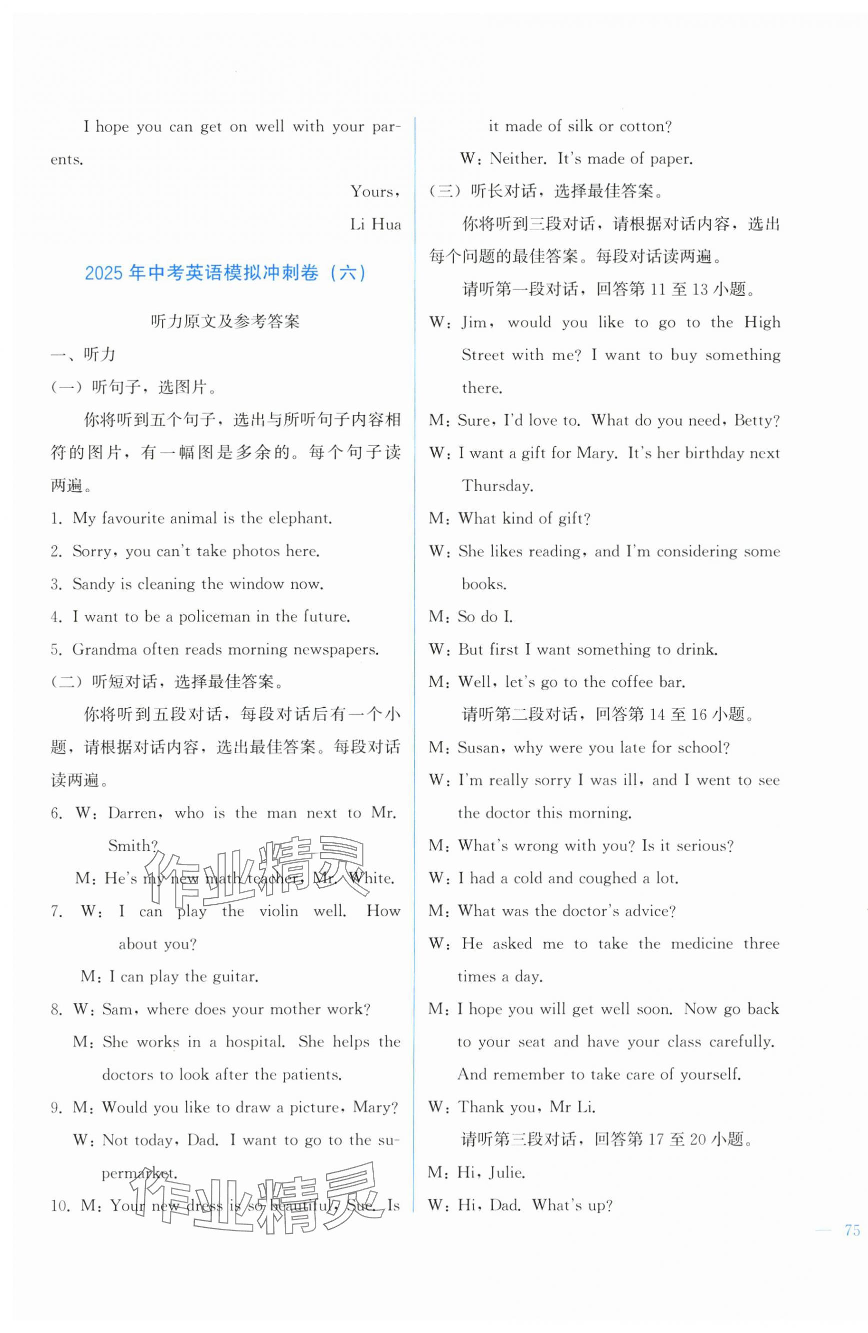 注:目前有些书本章节名称可能整理的还不是很完善,但都是按照顺序排列的,请同学们按照顺序仔细查找。练习册 2025年中考宝典综合模拟冲刺英语 答案主要是用来给同学们做完题方便对答案用的,请勿直接抄袭。