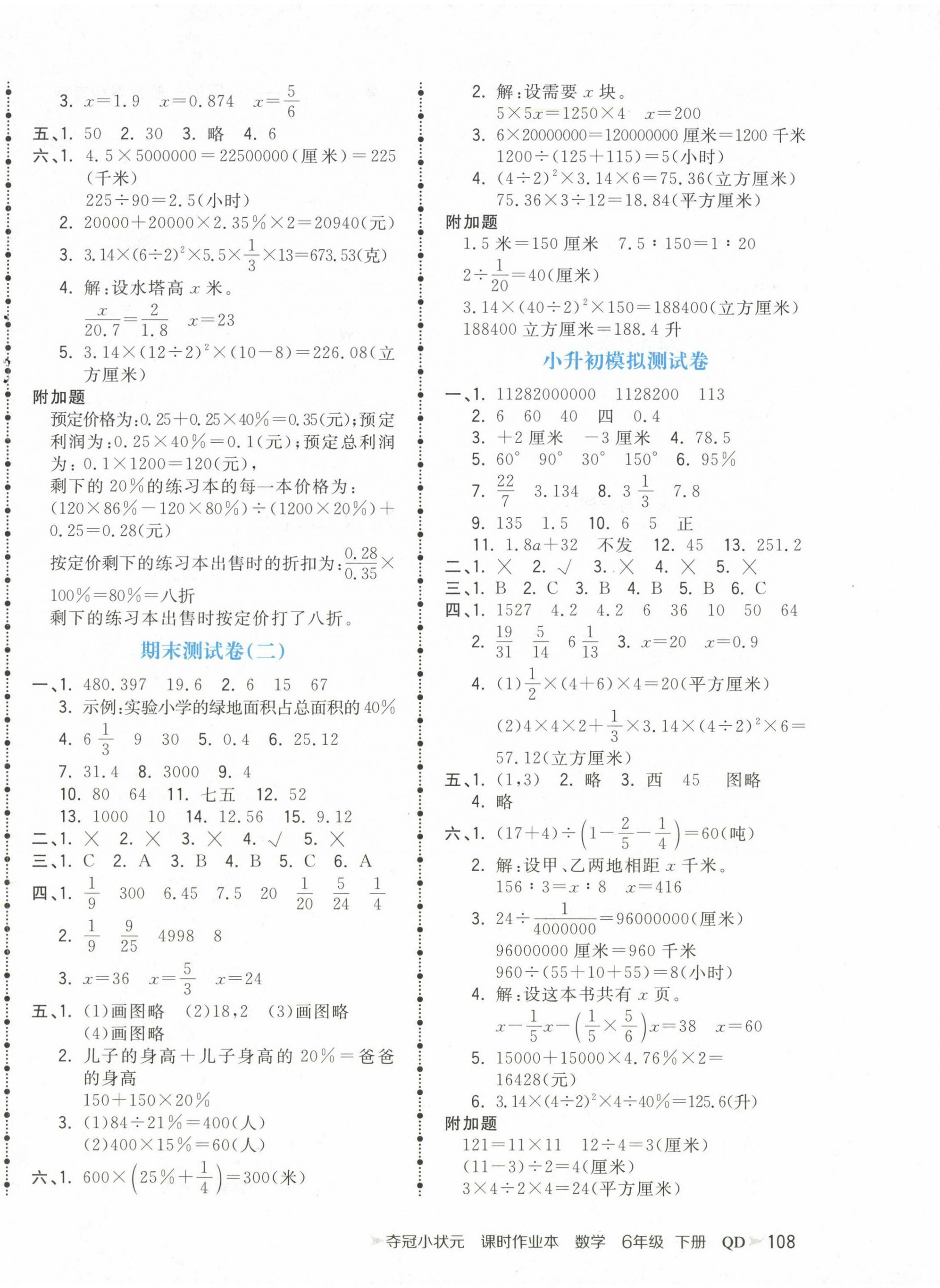 注:目前有些书本章节名称可能整理的还不是很完善,但都是按照顺序排列的,请同学们按照顺序仔细查找。练习册 2025年夺冠小状元课时作业本六年级数学下册青岛版 答案主要是用来给同学们做完题方便对答案用的,请勿直接抄袭。