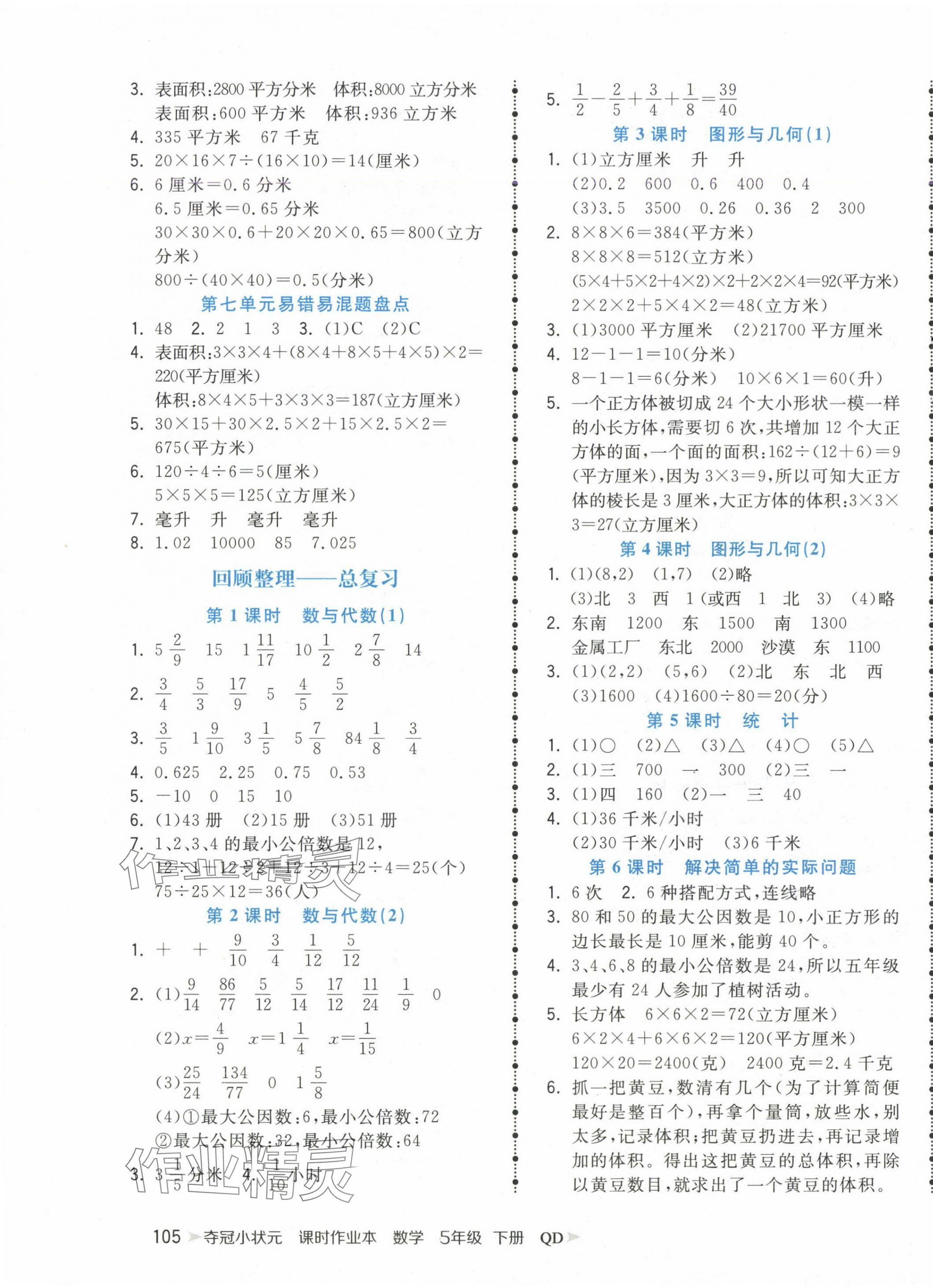 注:目前有些书本章节名称可能整理的还不是很完善,但都是按照顺序排列的,请同学们按照顺序仔细查找。练习册 2025年夺冠小状元课时作业本五年级数学下册青岛版 答案主要是用来给同学们做完题方便对答案用的,请勿直接抄袭。