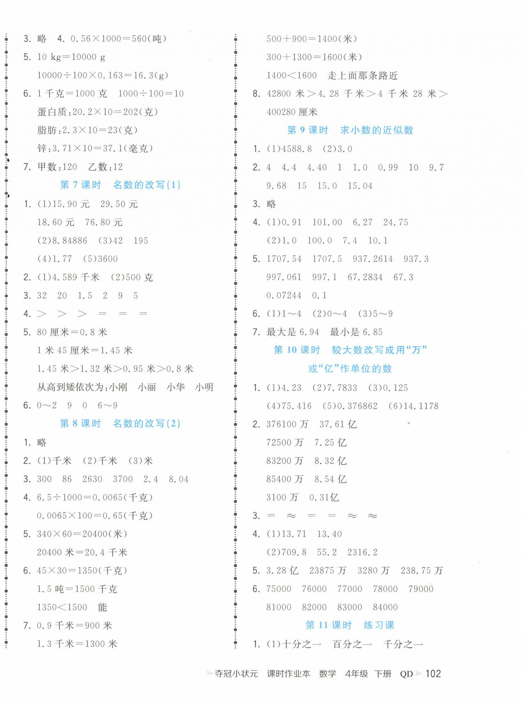 注:目前有些书本章节名称可能整理的还不是很完善,但都是按照顺序排列的,请同学们按照顺序仔细查找。练习册 2025年夺冠小状元课时作业本四年级数学下册青岛版 答案主要是用来给同学们做完题方便对答案用的,请勿直接抄袭。