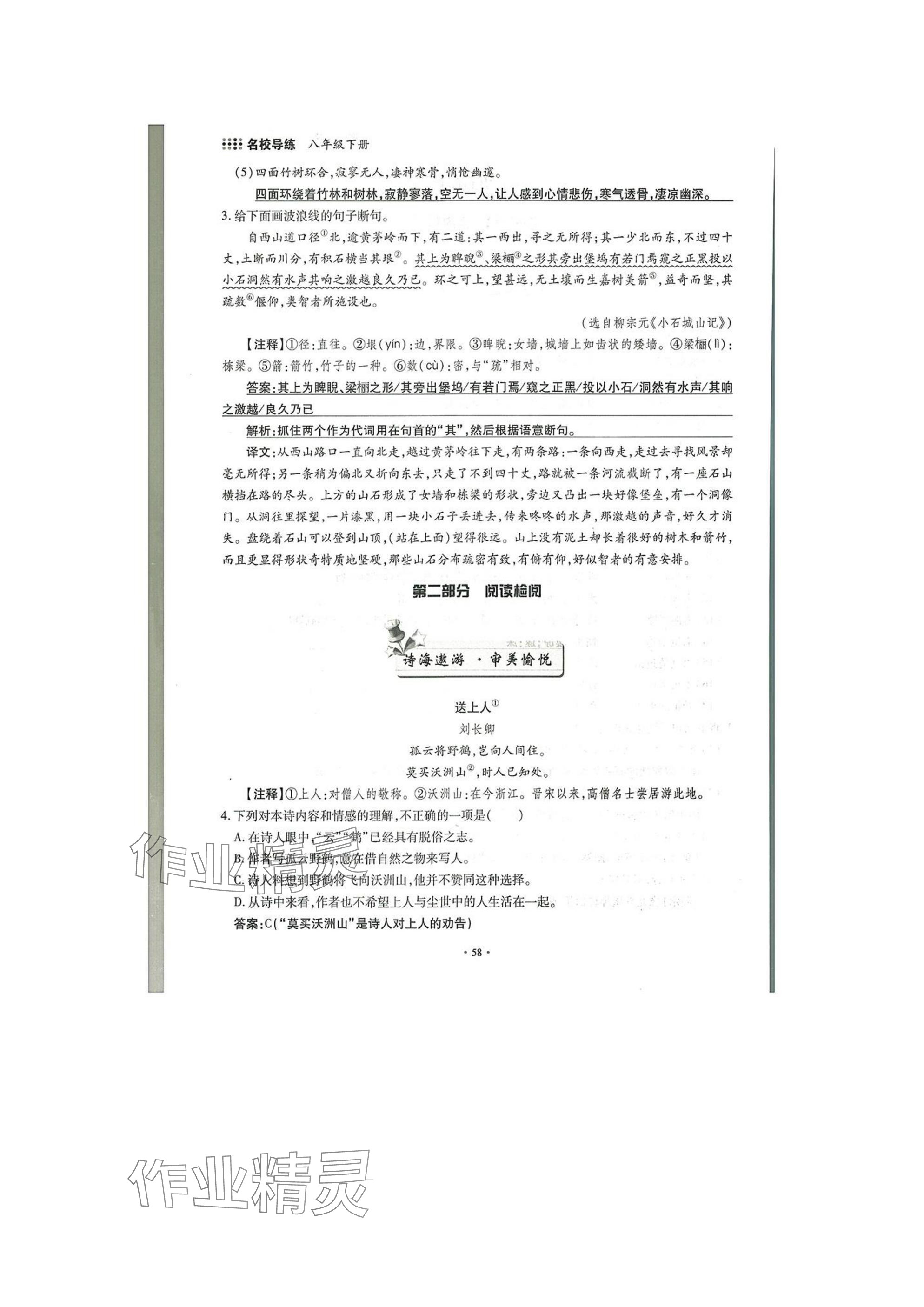 注:目前有些书本章节名称可能整理的还不是很完善,但都是按照顺序排列的,请同学们按照顺序仔细查找。练习册 2025年名校导练八年级语文下册人教版 答案主要是用来给同学们做完题方便对答案用的,请勿直接抄袭。