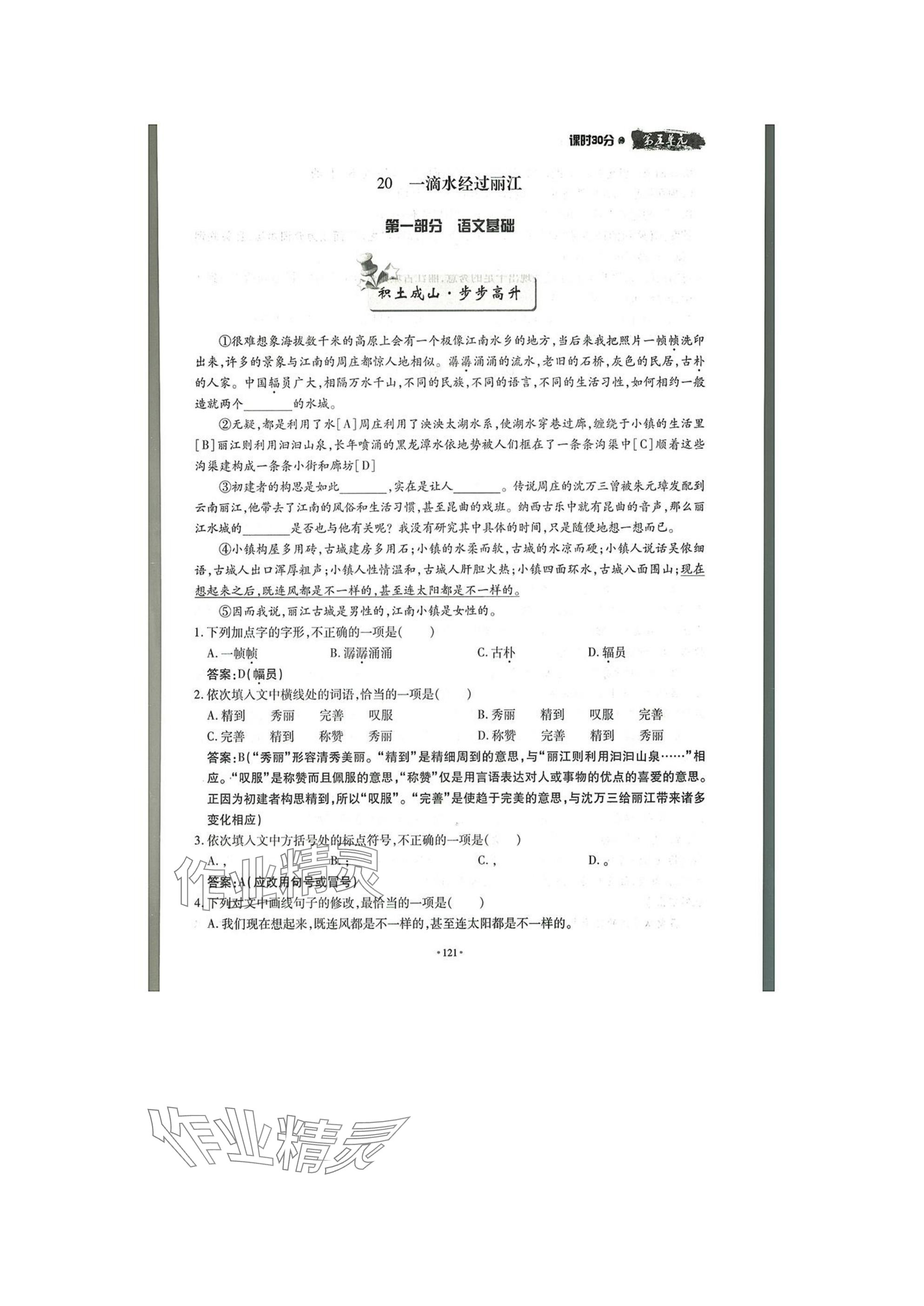 注:目前有些书本章节名称可能整理的还不是很完善,但都是按照顺序排列的,请同学们按照顺序仔细查找。练习册 2025年名校导练八年级语文下册人教版 答案主要是用来给同学们做完题方便对答案用的,请勿直接抄袭。