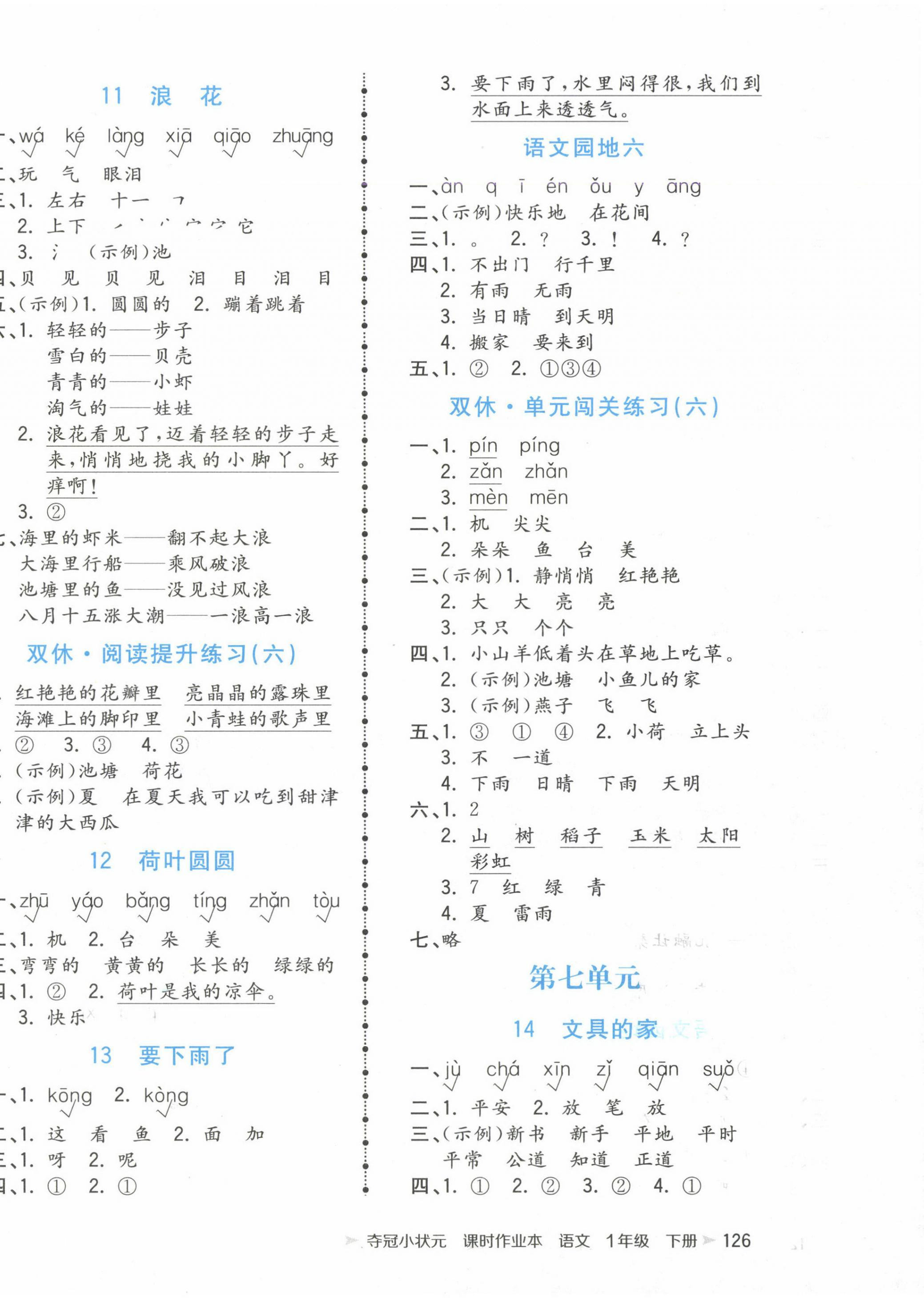 注:目前有些书本章节名称可能整理的还不是很完善,但都是按照顺序排列的,请同学们按照顺序仔细查找。练习册 2025年夺冠小状元课时作业本一年级语文下册人教版 答案主要是用来给同学们做完题方便对答案用的,请勿直接抄袭。