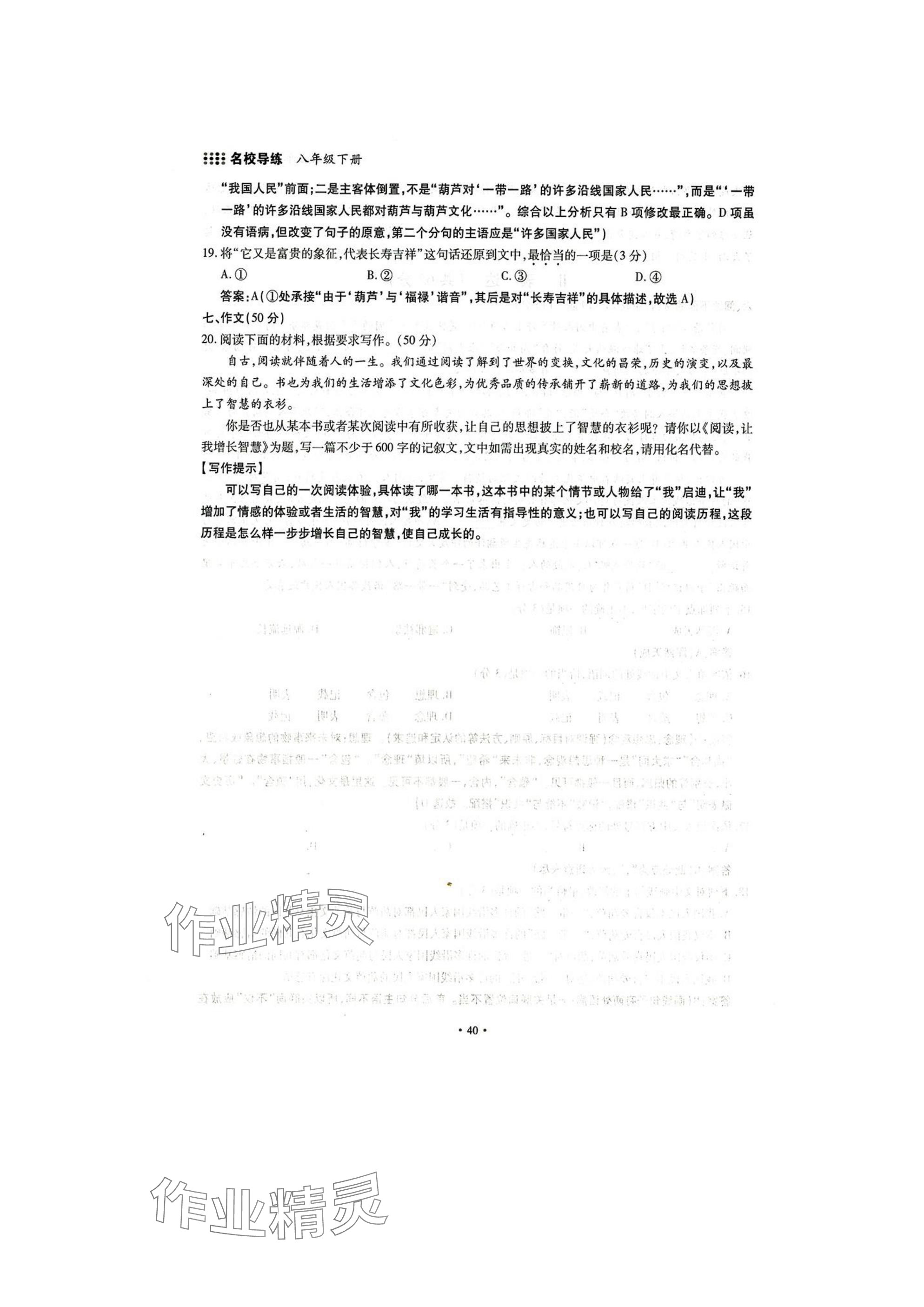 注:目前有些书本章节名称可能整理的还不是很完善,但都是按照顺序排列的,请同学们按照顺序仔细查找。练习册 2025年名校导练八年级语文下册人教版 答案主要是用来给同学们做完题方便对答案用的,请勿直接抄袭。