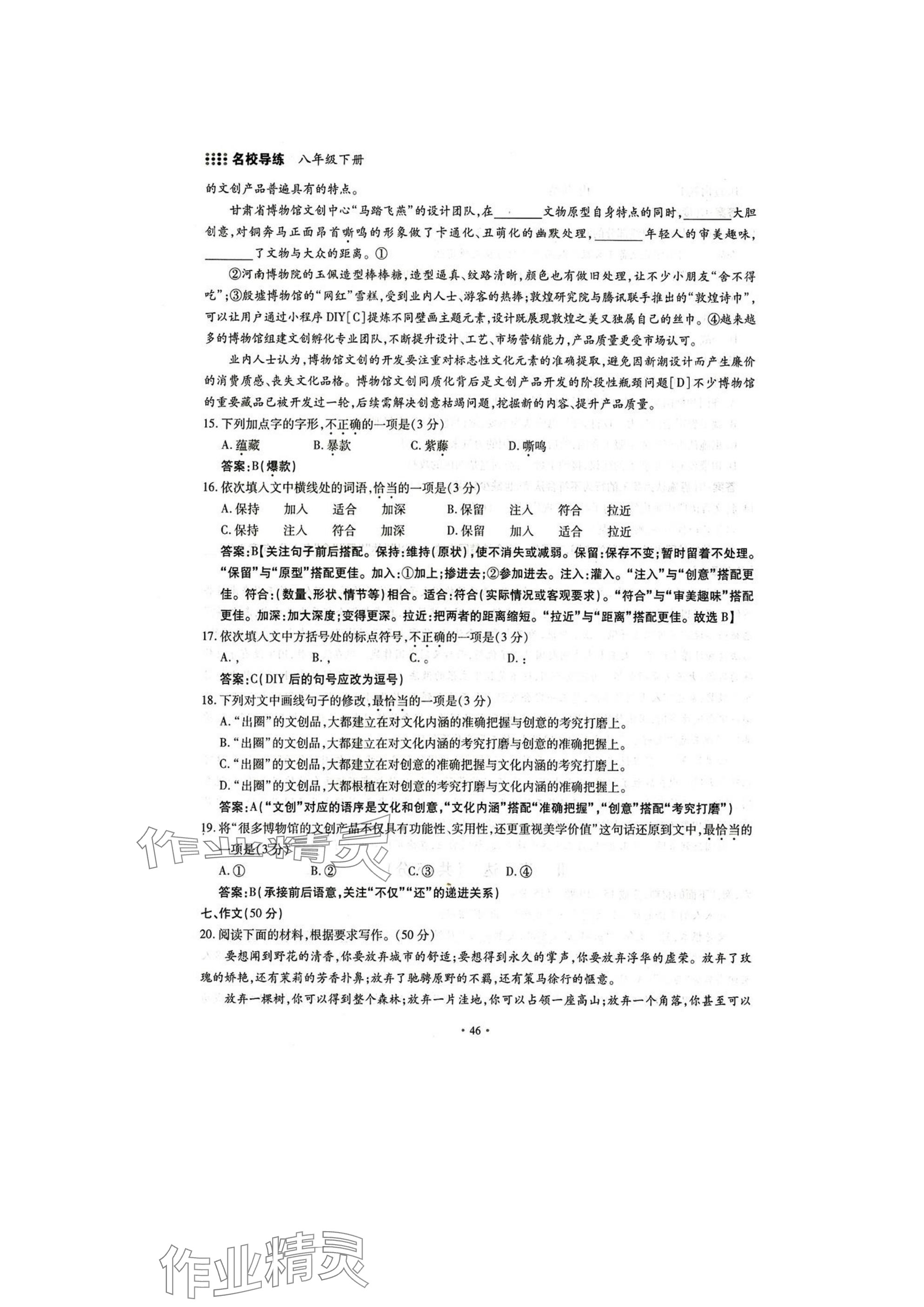 注:目前有些书本章节名称可能整理的还不是很完善,但都是按照顺序排列的,请同学们按照顺序仔细查找。练习册 2025年名校导练八年级语文下册人教版 答案主要是用来给同学们做完题方便对答案用的,请勿直接抄袭。