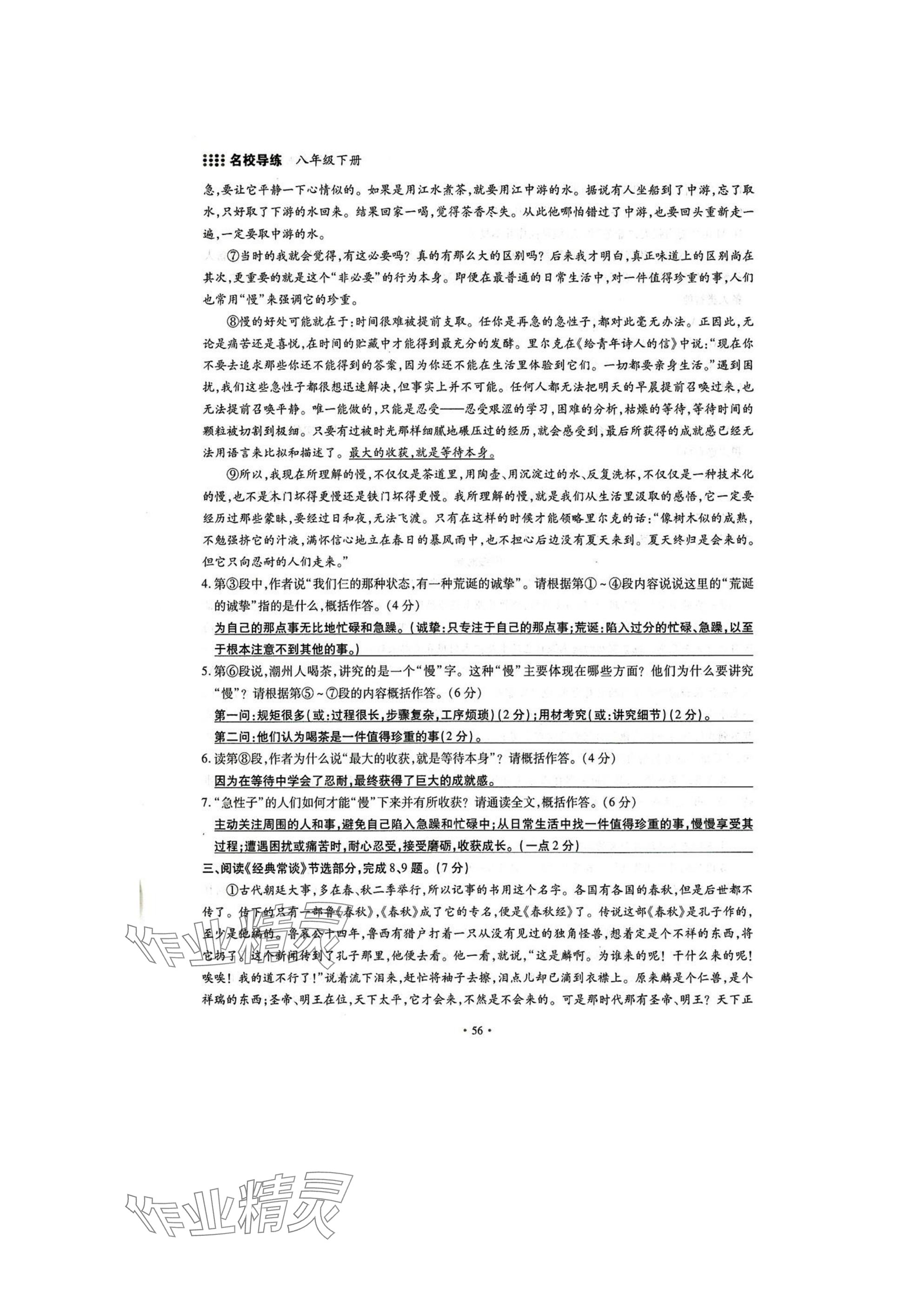 注:目前有些书本章节名称可能整理的还不是很完善,但都是按照顺序排列的,请同学们按照顺序仔细查找。练习册 2025年名校导练八年级语文下册人教版 答案主要是用来给同学们做完题方便对答案用的,请勿直接抄袭。