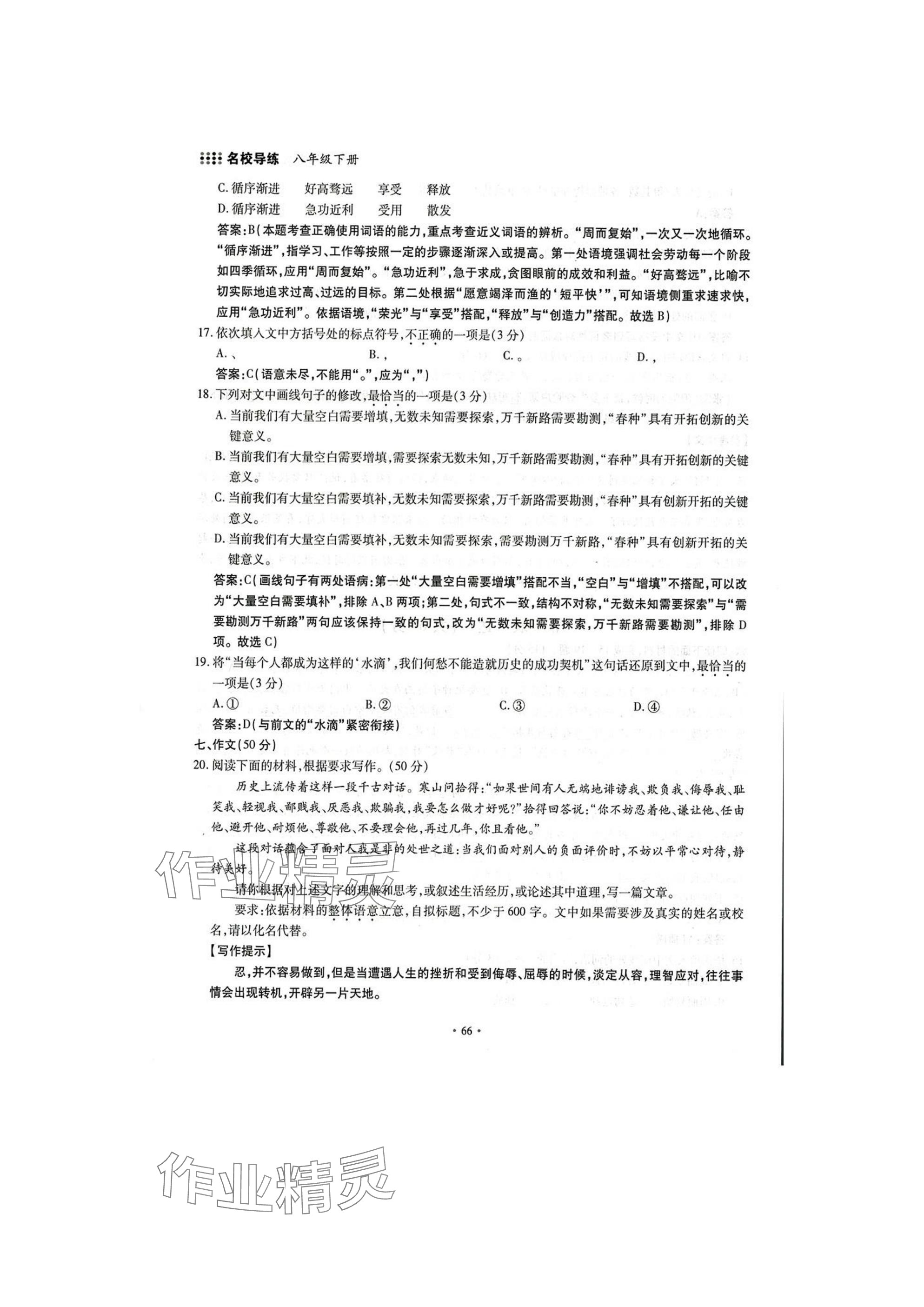 注:目前有些书本章节名称可能整理的还不是很完善,但都是按照顺序排列的,请同学们按照顺序仔细查找。练习册 2025年名校导练八年级语文下册人教版 答案主要是用来给同学们做完题方便对答案用的,请勿直接抄袭。