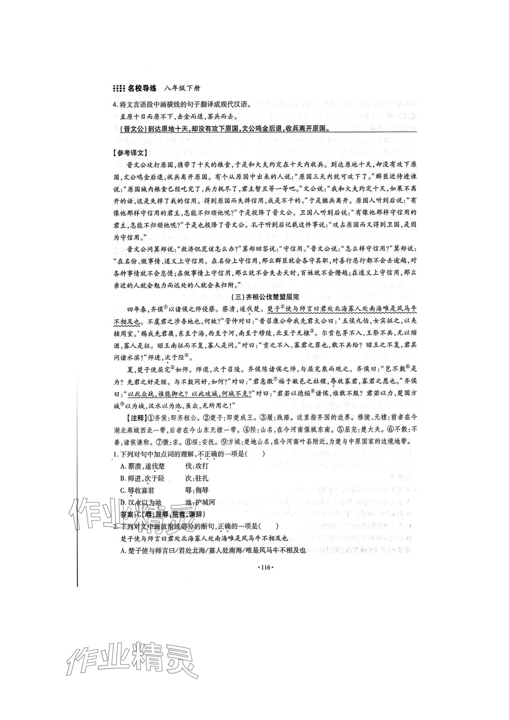 注:目前有些书本章节名称可能整理的还不是很完善,但都是按照顺序排列的,请同学们按照顺序仔细查找。练习册 2025年名校导练八年级语文下册人教版 答案主要是用来给同学们做完题方便对答案用的,请勿直接抄袭。
