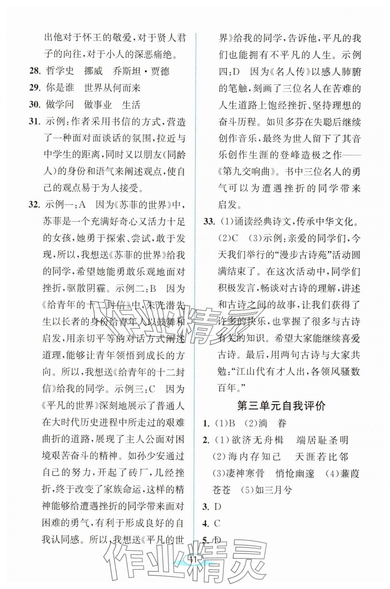 注:目前有些书本章节名称可能整理的还不是很完善,但都是按照顺序排列的,请同学们按照顺序仔细查找。练习册 2025年教与学浙江教育出版社八年级语文下册人教版 答案主要是用来给同学们做完题方便对答案用的,请勿直接抄袭。