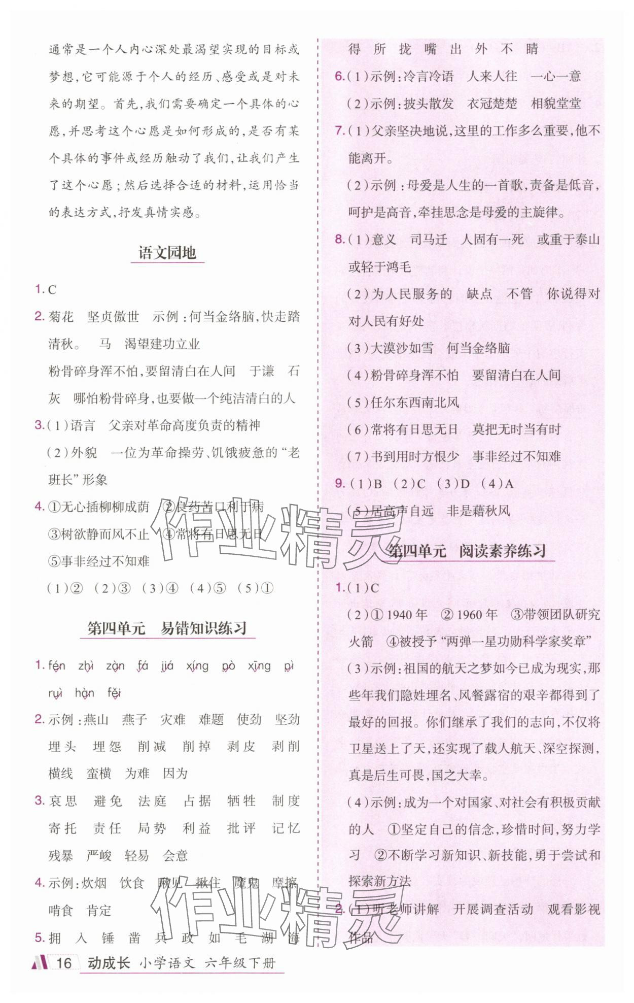 注:目前有些书本章节名称可能整理的还不是很完善,但都是按照顺序排列的,请同学们按照顺序仔细查找。练习册 2025年动成长题题体现核心素养六年级语文下册人教版惠州专版 答案主要是用来给同学们做完题方便对答案用的,请勿直接抄袭。