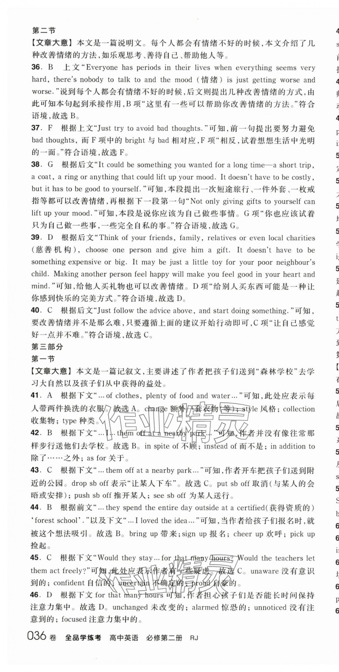 注:目前有些书本章节名称可能整理的还不是很完善,但都是按照顺序排列的,请同学们按照顺序仔细查找。练习册 2025年全品学练考高中英语必修第二册人教版 答案主要是用来给同学们做完题方便对答案用的,请勿直接抄袭。